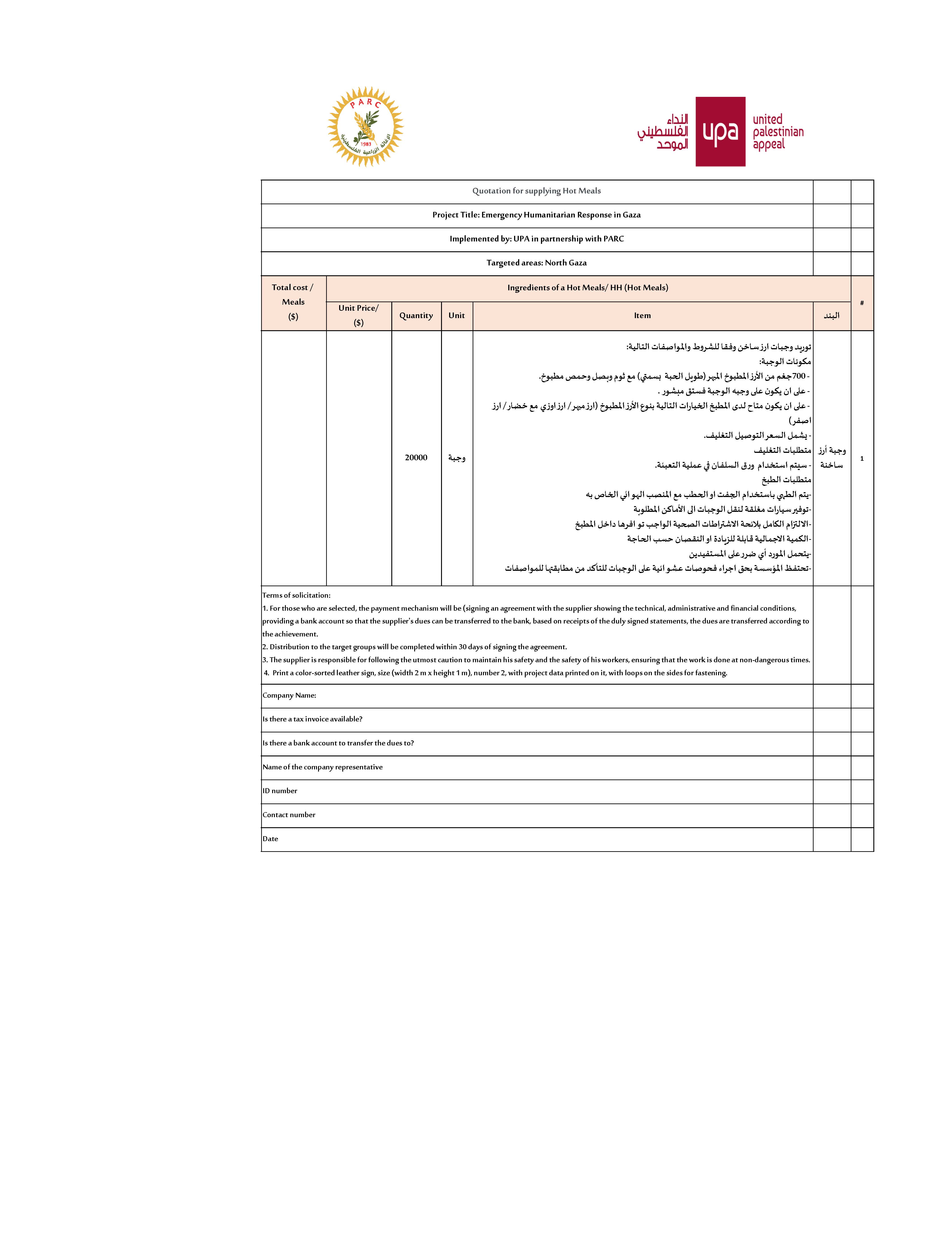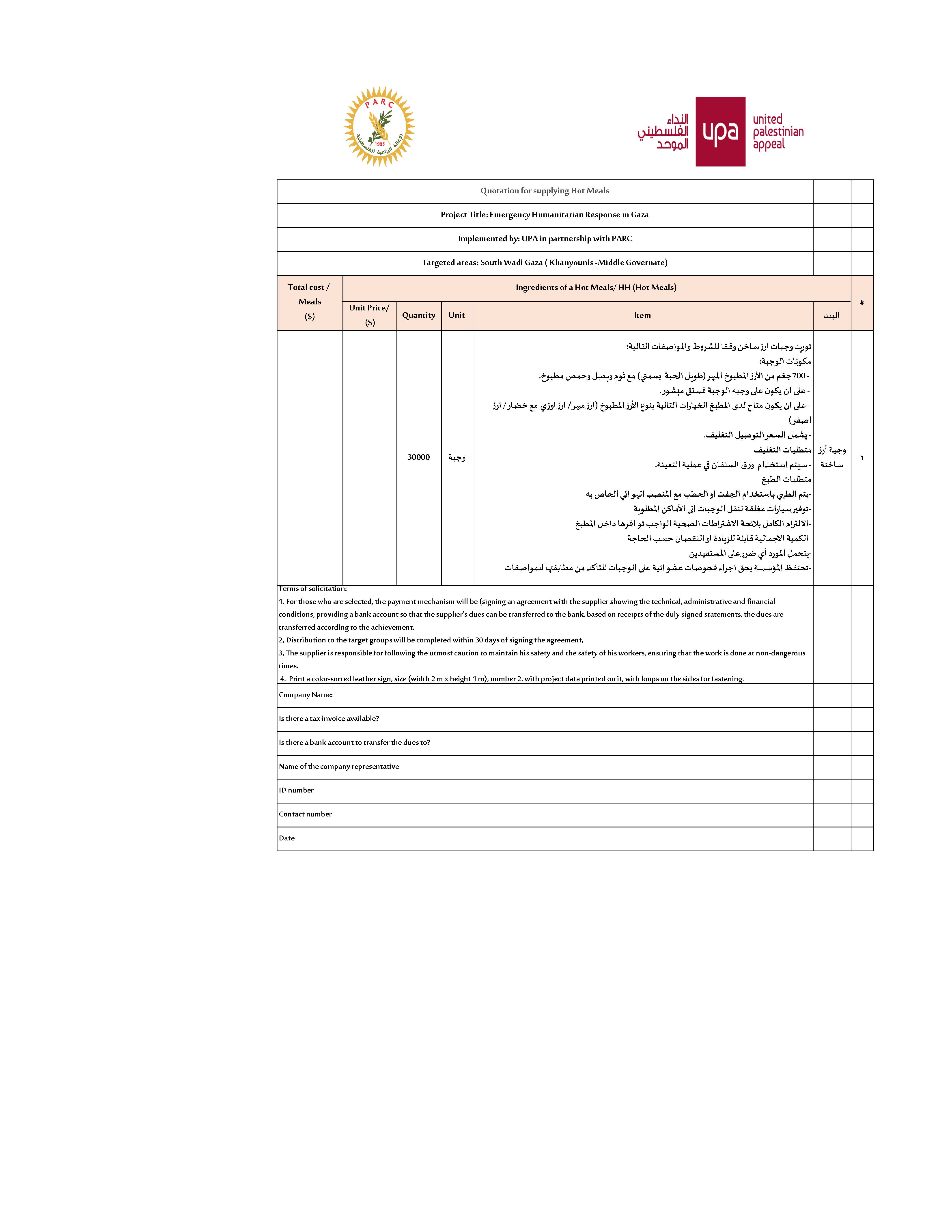 Bid # 2025 - 10176 - 02 – Food Parcels - Gaza طرح مناقصة توريدطرود خضار طازجه(محافظة خانيونس+ دير البلح) التفاصيل