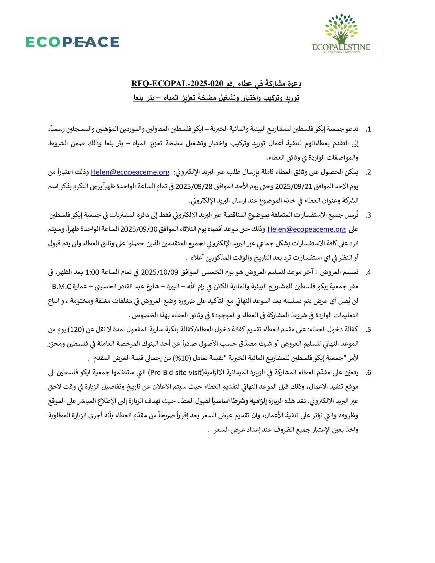 أعمال توريد قطع غيار لآبار المياه الجوفية في الضفة الغربية