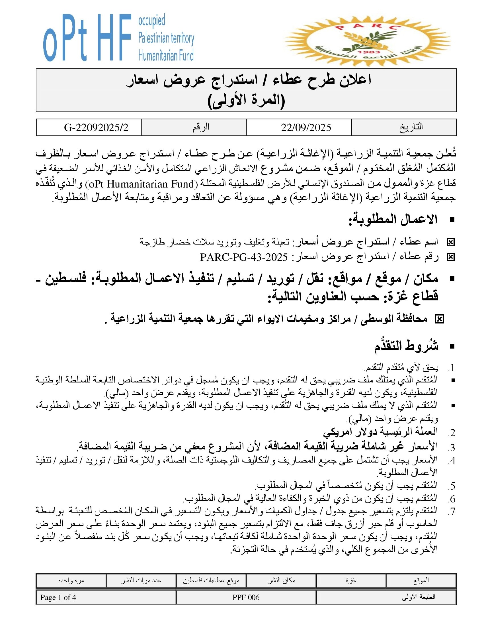 التصنيف : توريدات وخدمات زراعية وبيطرية