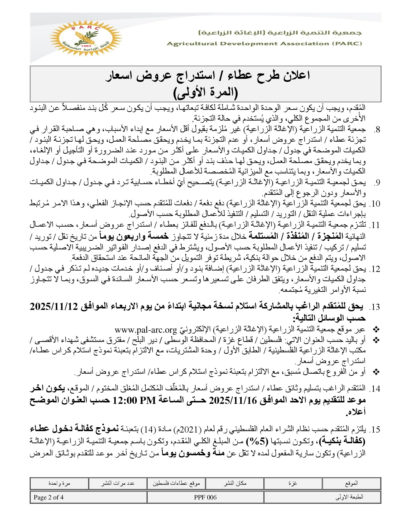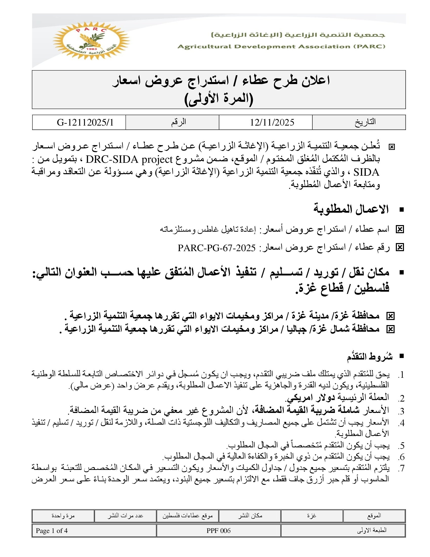 التصنيف : توريدات وخدمات زراعية وبيطرية