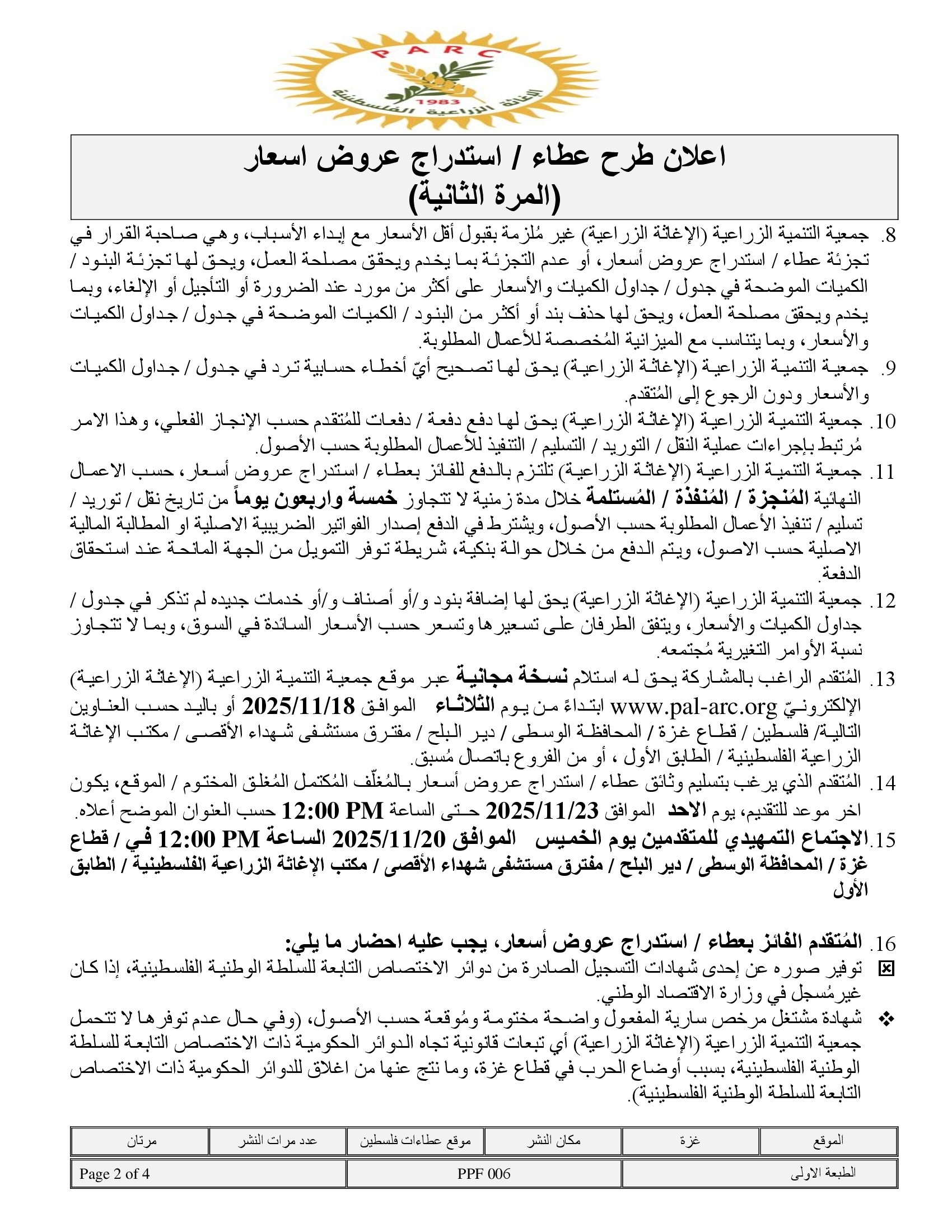 تفاصيل العطاء