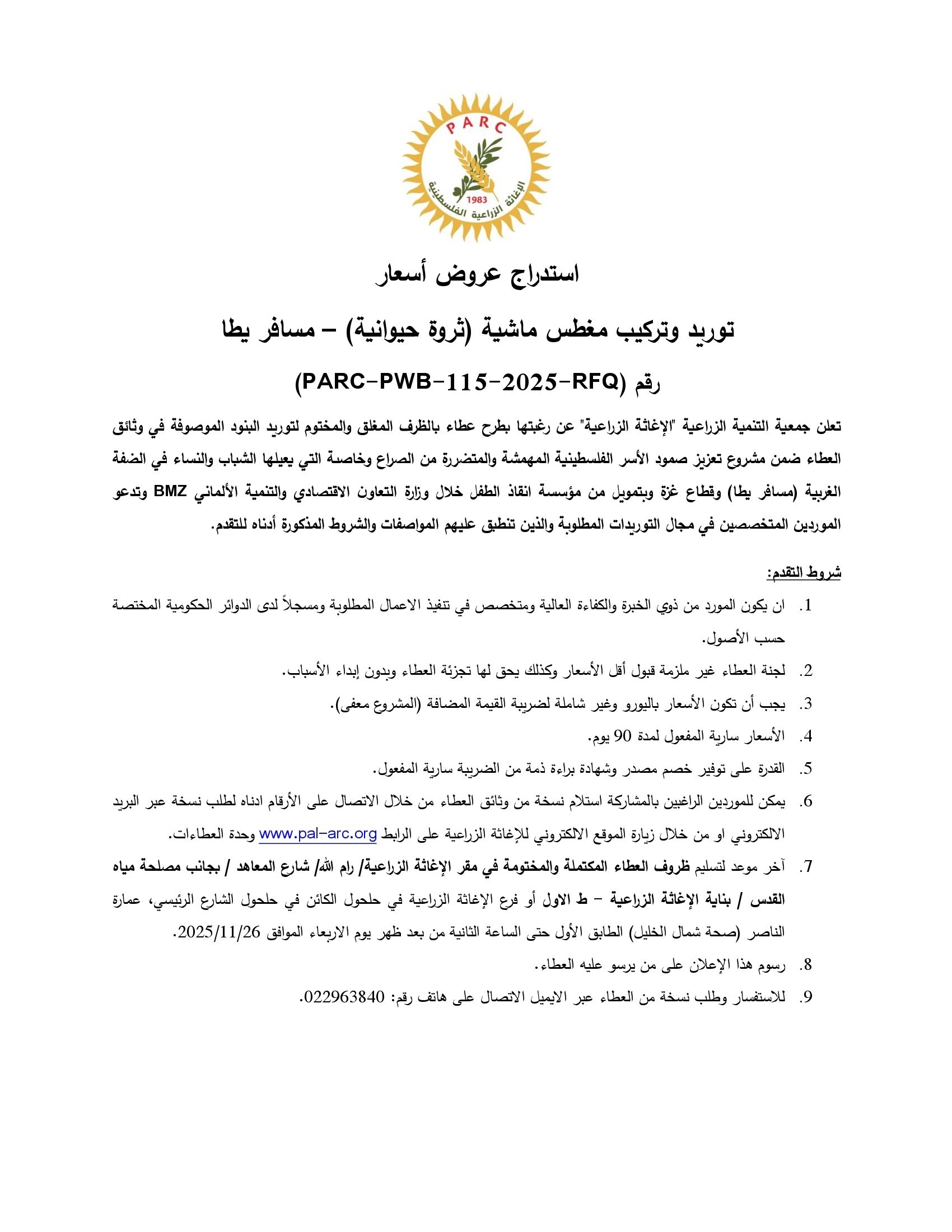 توريد وتركيب مغطس ماشية (ثروة حيوانية) – مسافر يطا