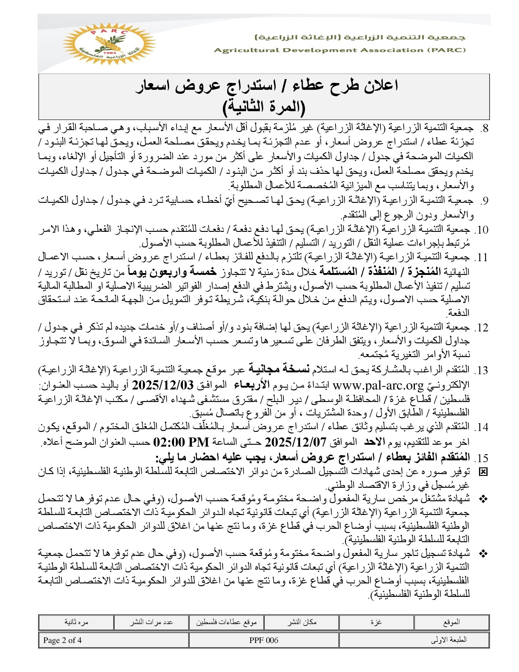 التصنيف : توريدات وخدمات زراعية وبيطرية