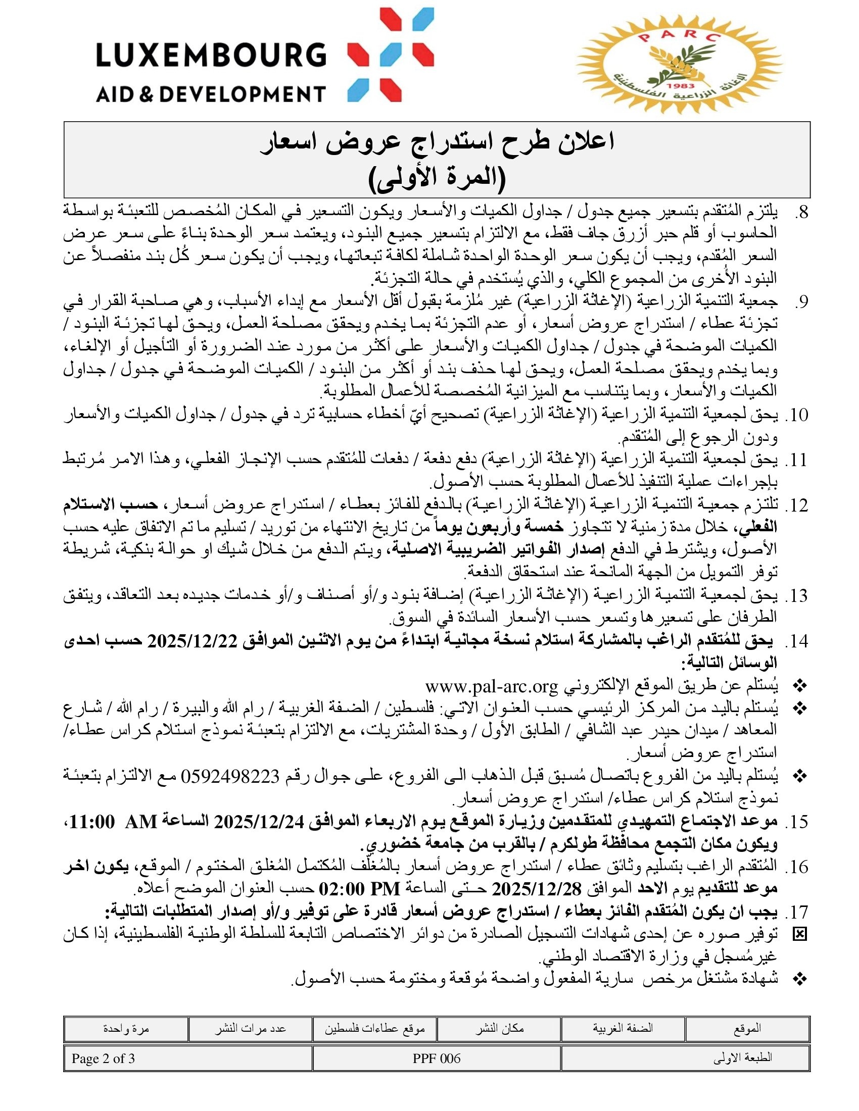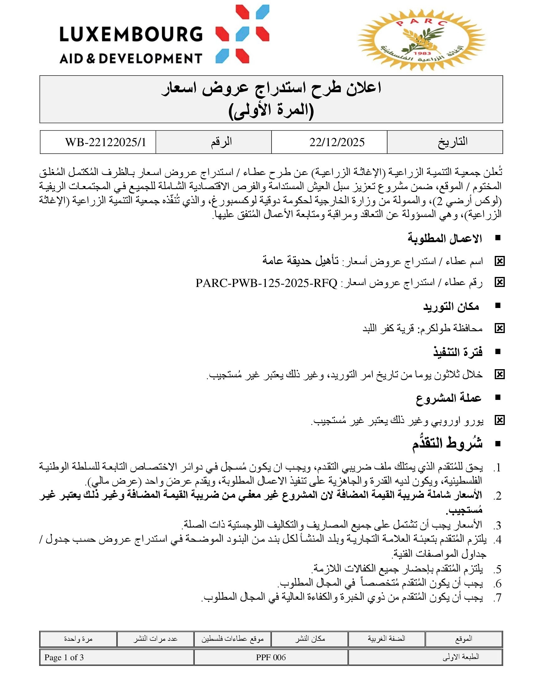 تفاصيل العطاء