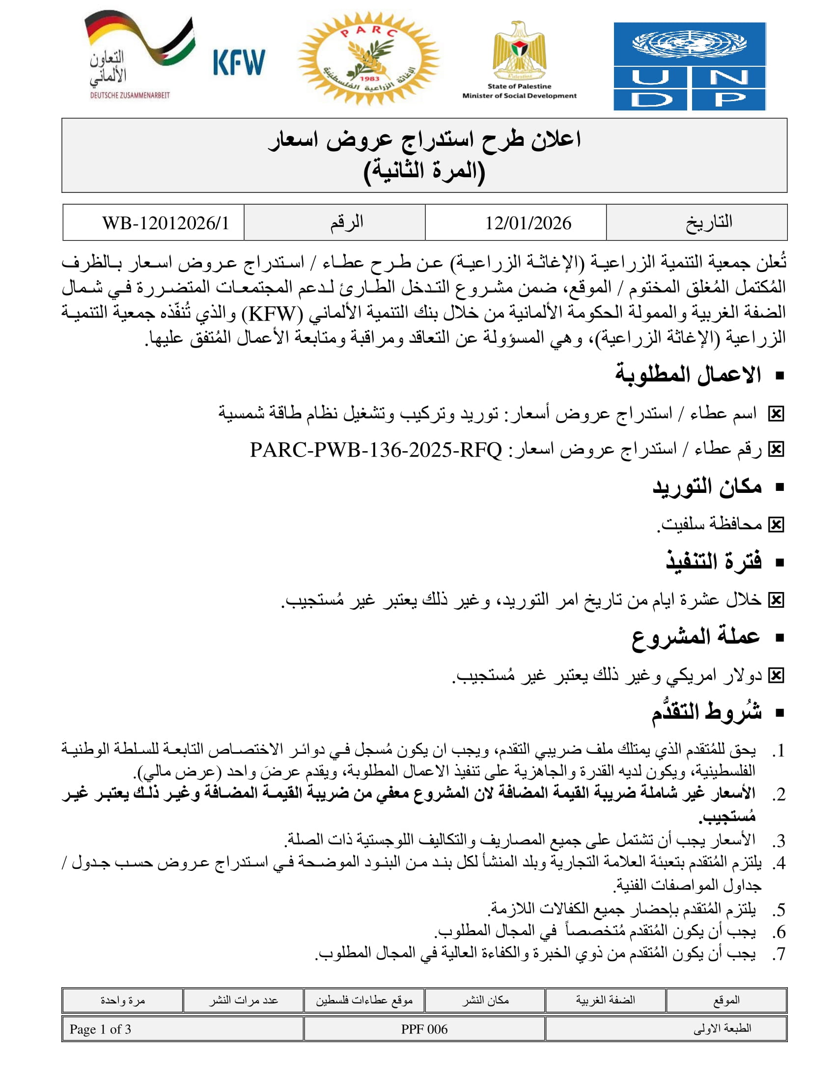 تاريخ النشر : 06/01/2026 تاريخ الانتهاء : 15/01/2026