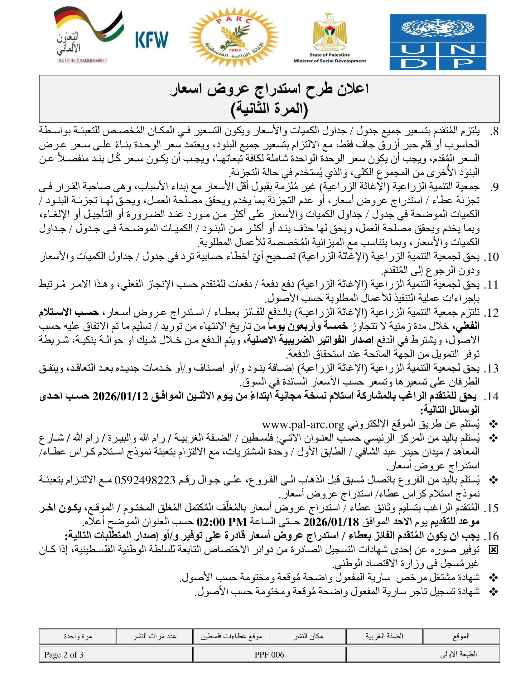 تاريخ النشر : 06/01/2026 تاريخ الانتهاء : 19/01/2026