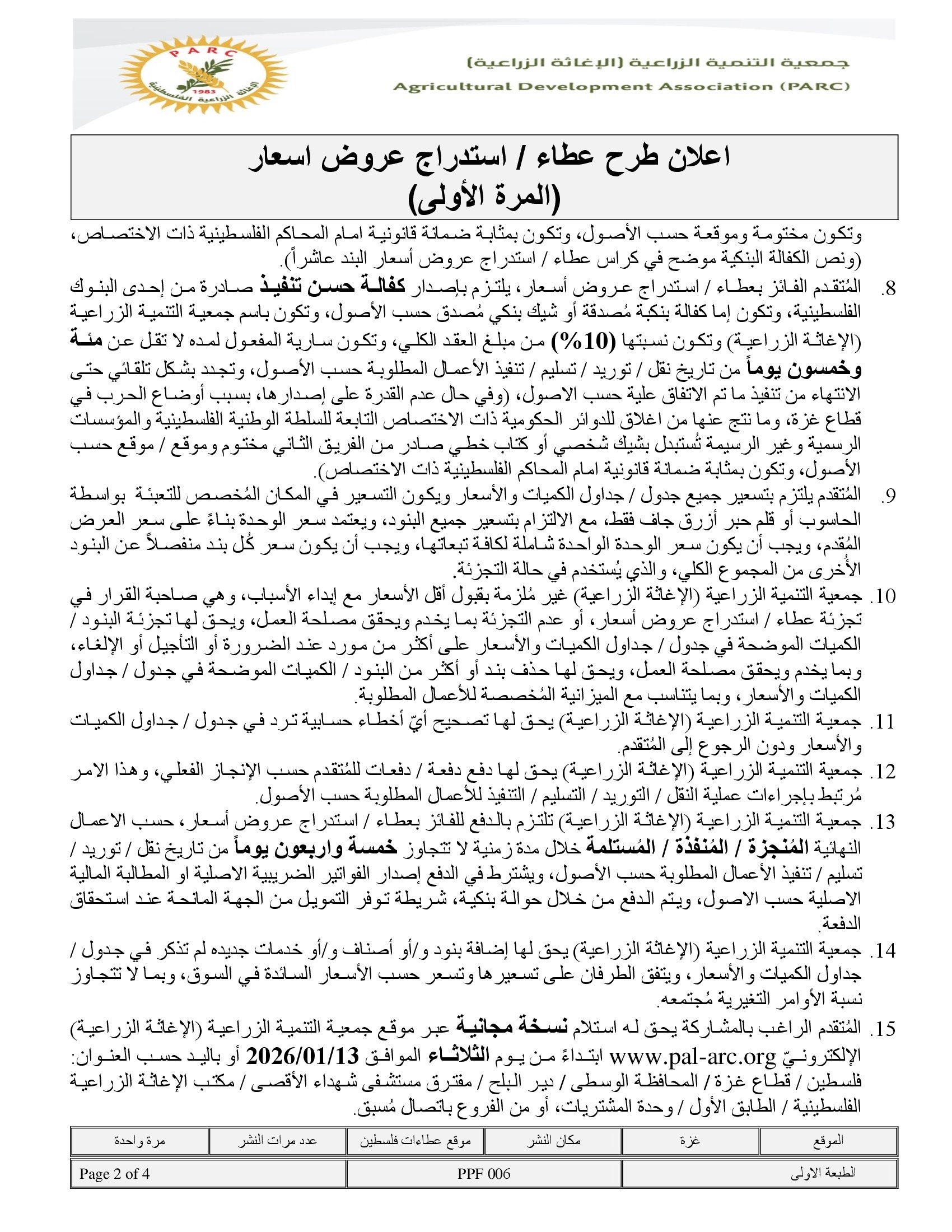 تاريخ النشر : 06/01/2026 تاريخ الانتهاء : 15/01/2026