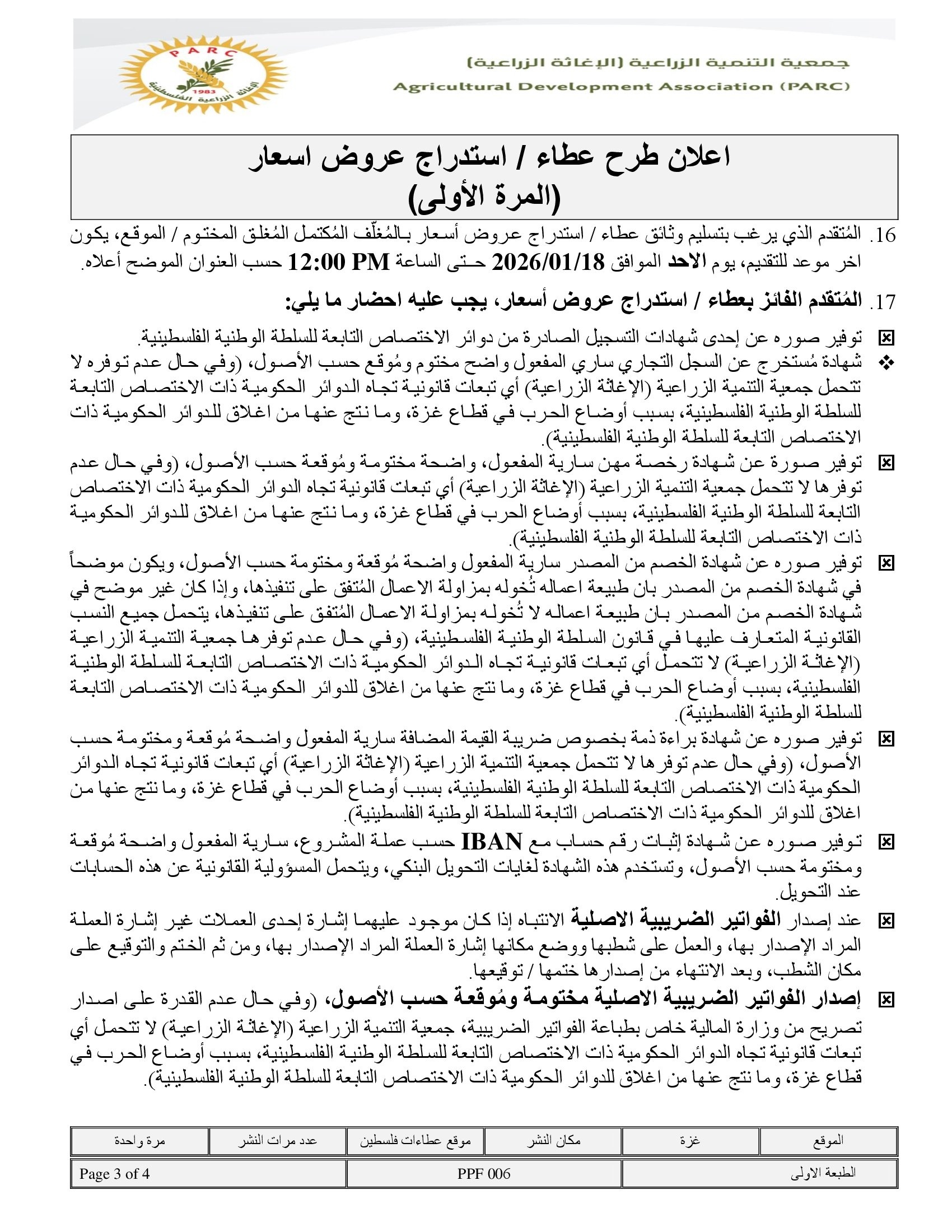 تاريخ النشر : 06/01/2026 تاريخ الانتهاء : 19/01/2026