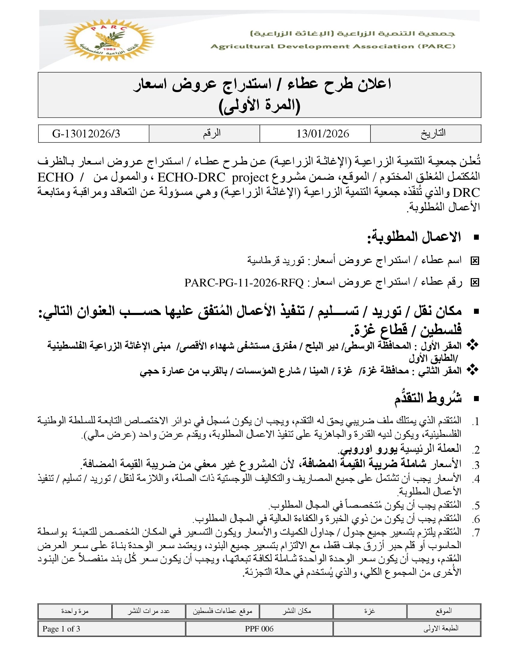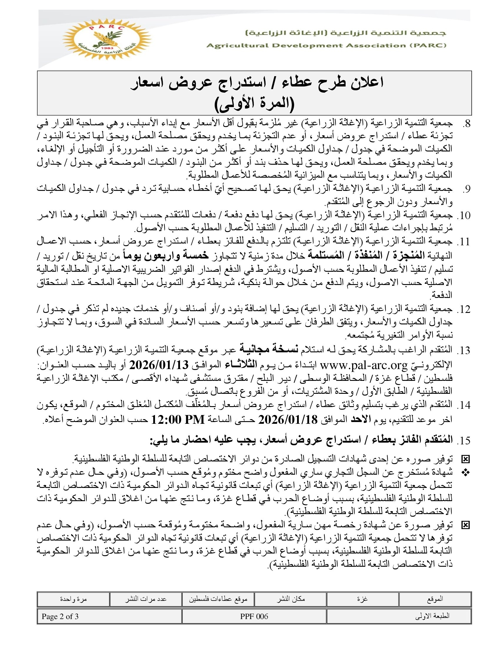 التصنيف : توريدات وخدمات زراعية وبيطرية
