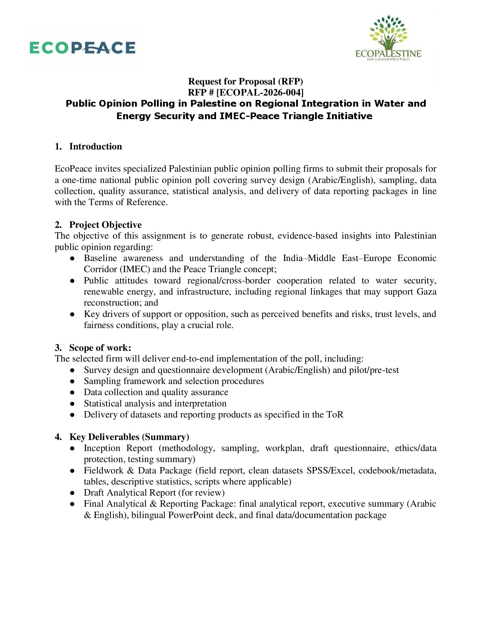 Public Opinion Polling in Palestine on Regional Integration in Water and Energy Security and IMEC-Peace Triangle Initiative