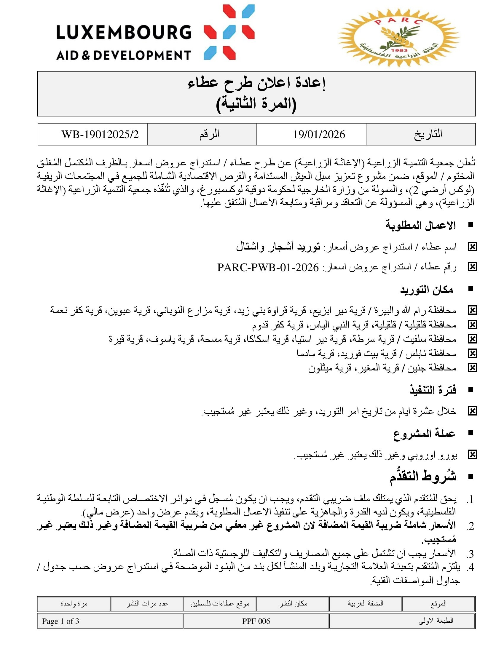 توريد اشتال وبذور ومدخلات زراعية (غزة / الوسطى)