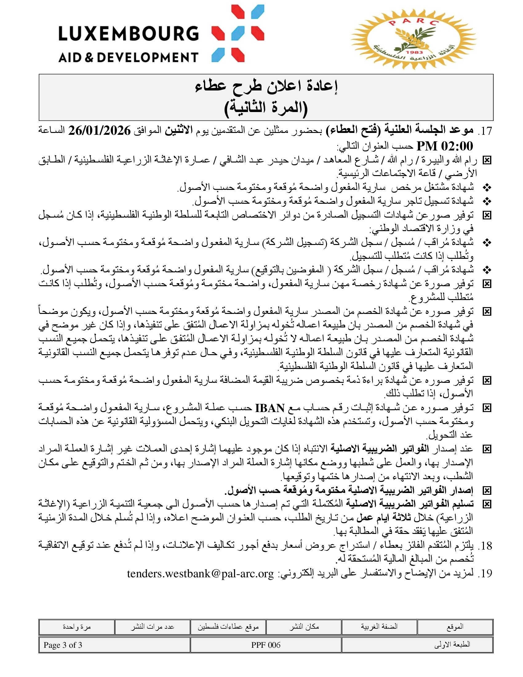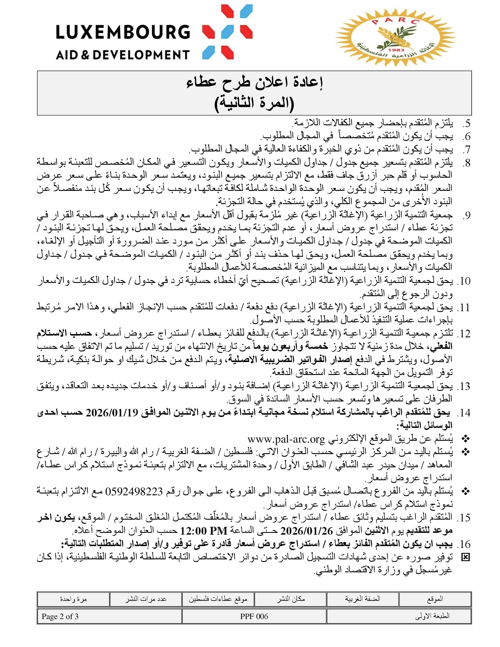 التصنيف : توريدات وخدمات زراعية وبيطرية