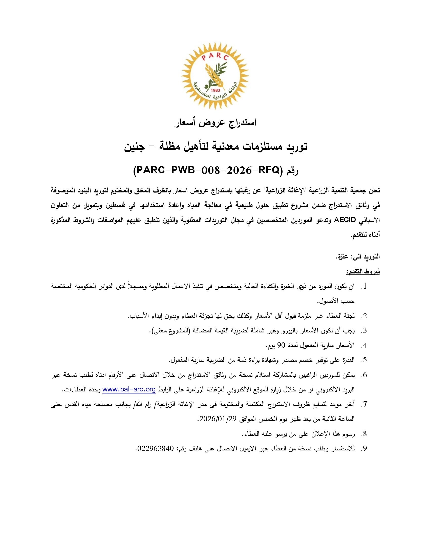 توريد مستلزمات معدنية لتأهيل مظلة - جنين