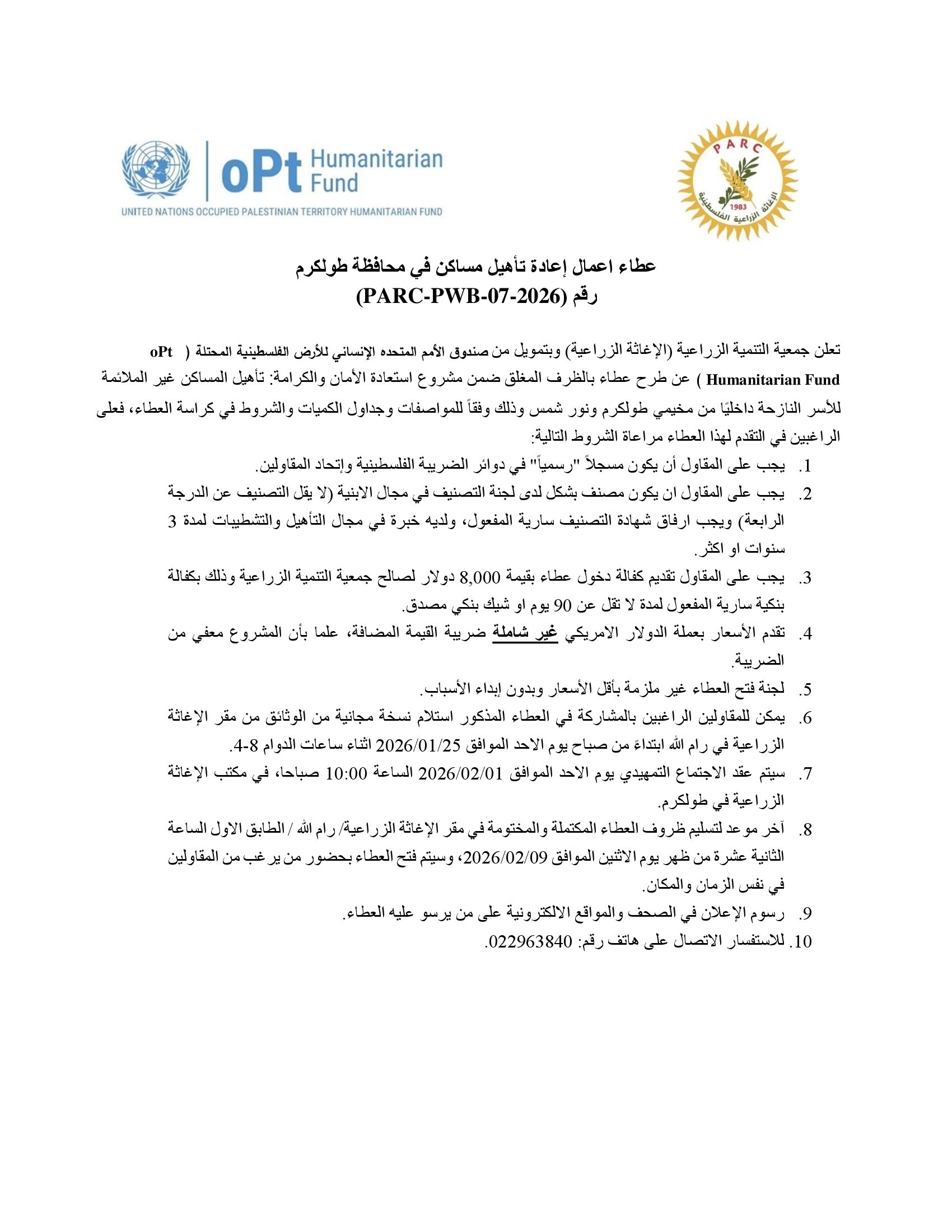 تاريخ النشر : 24/01/2026 تاريخ الانتهاء : 09/02/2026