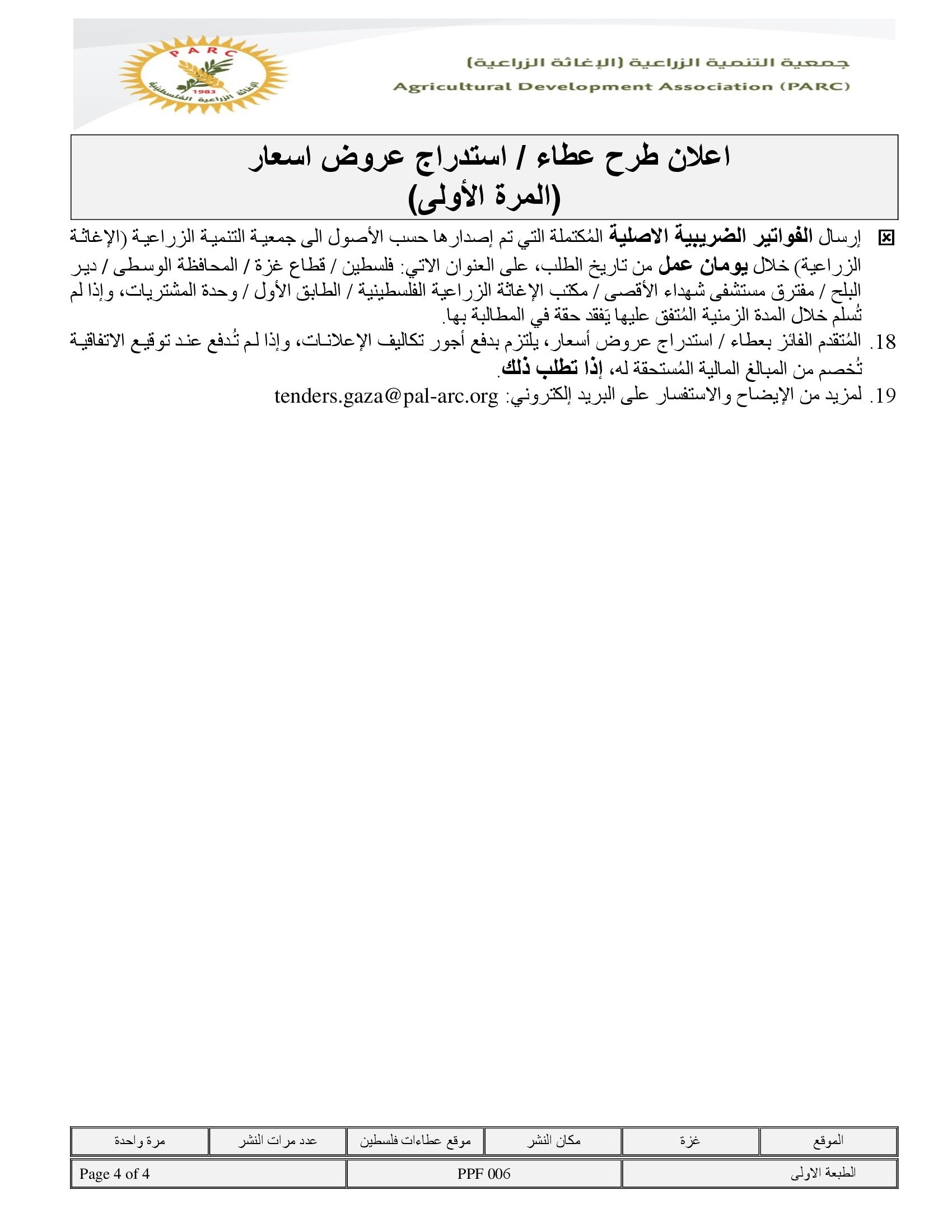 المؤسسة : جمعية التنمية الزراعية موقغ : الموقع الالكتروني بريد : info@pal-arc.org