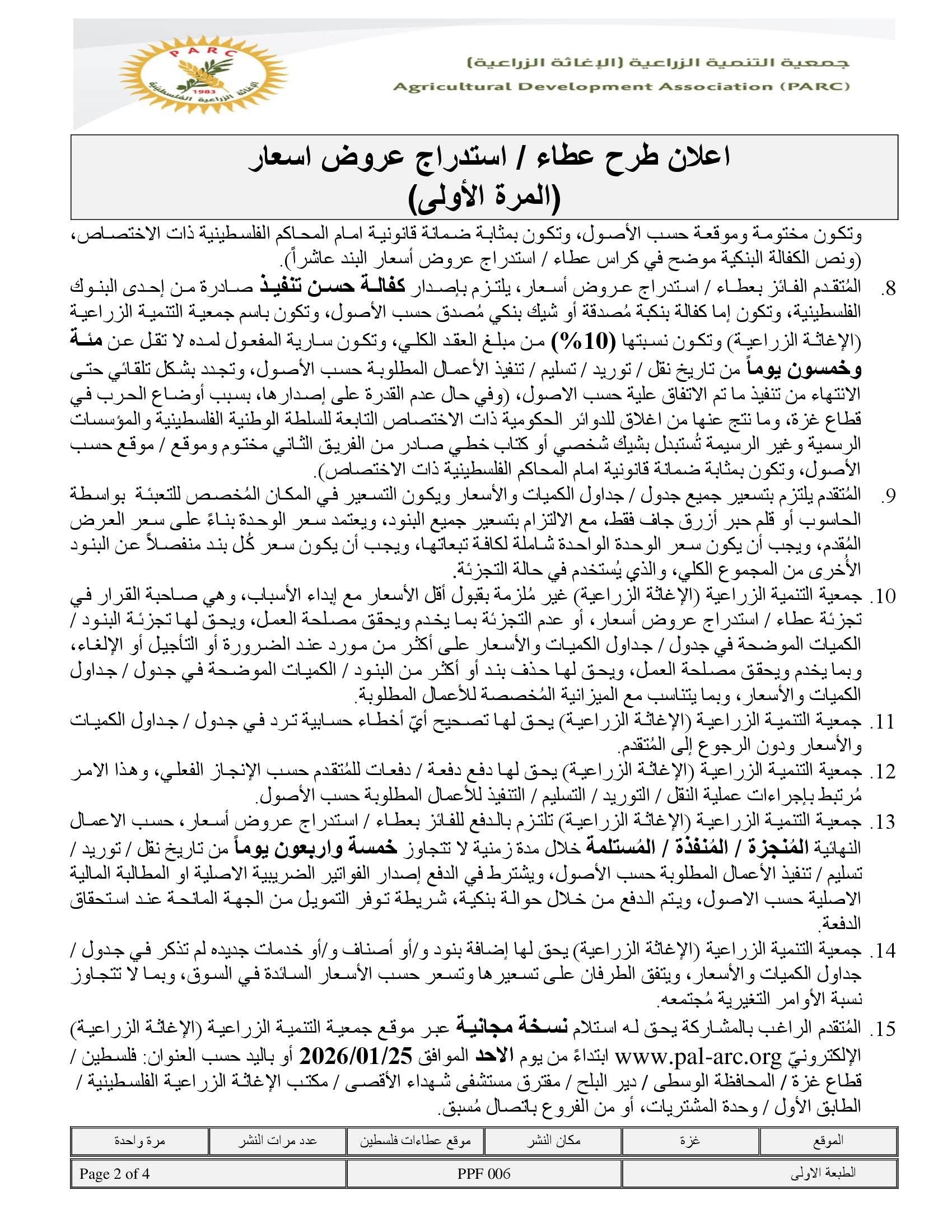 تاريخ النشر : 24/01/2026 تاريخ الانتهاء : 09/02/2026