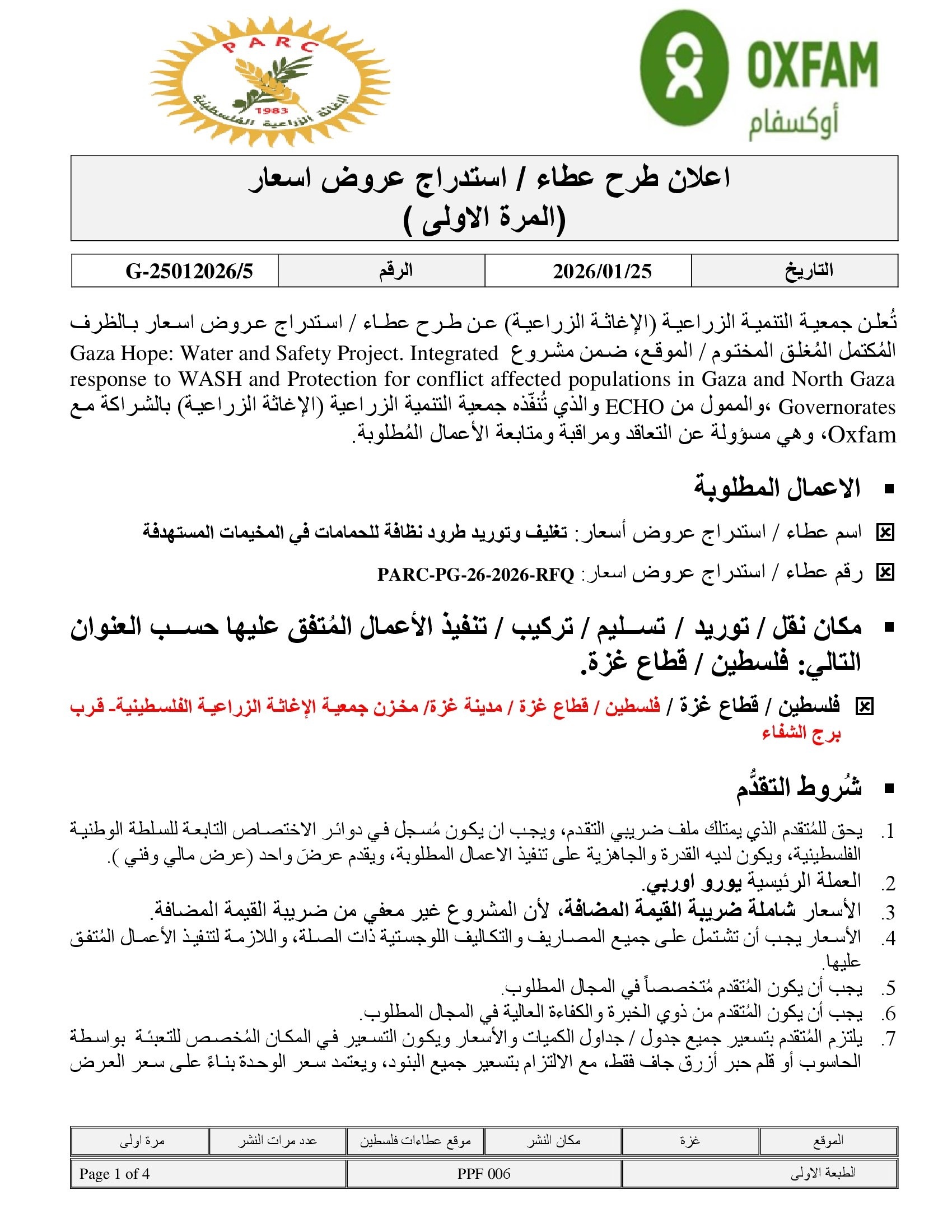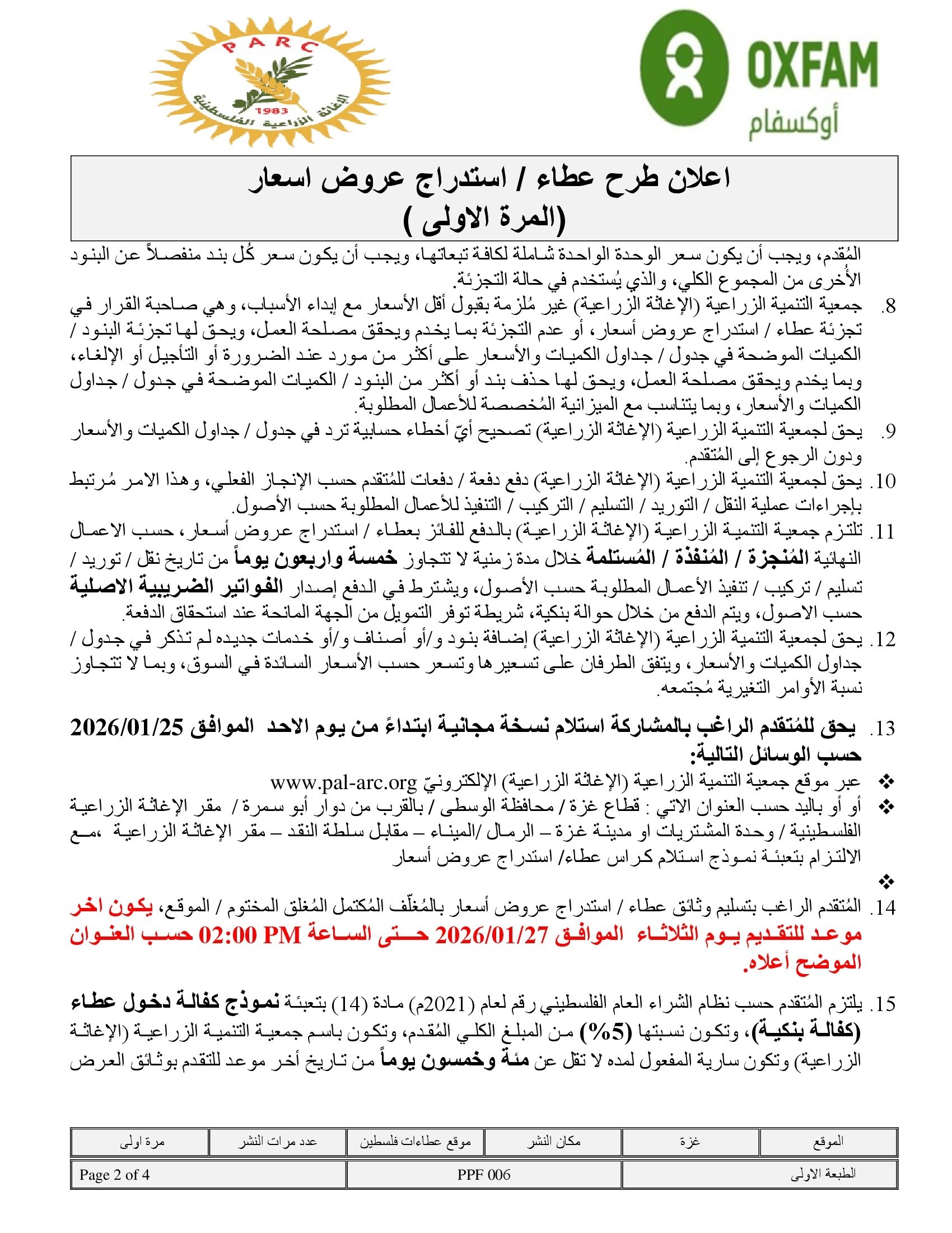 تاريخ النشر : 24/01/2026 تاريخ الانتهاء : 09/02/2026