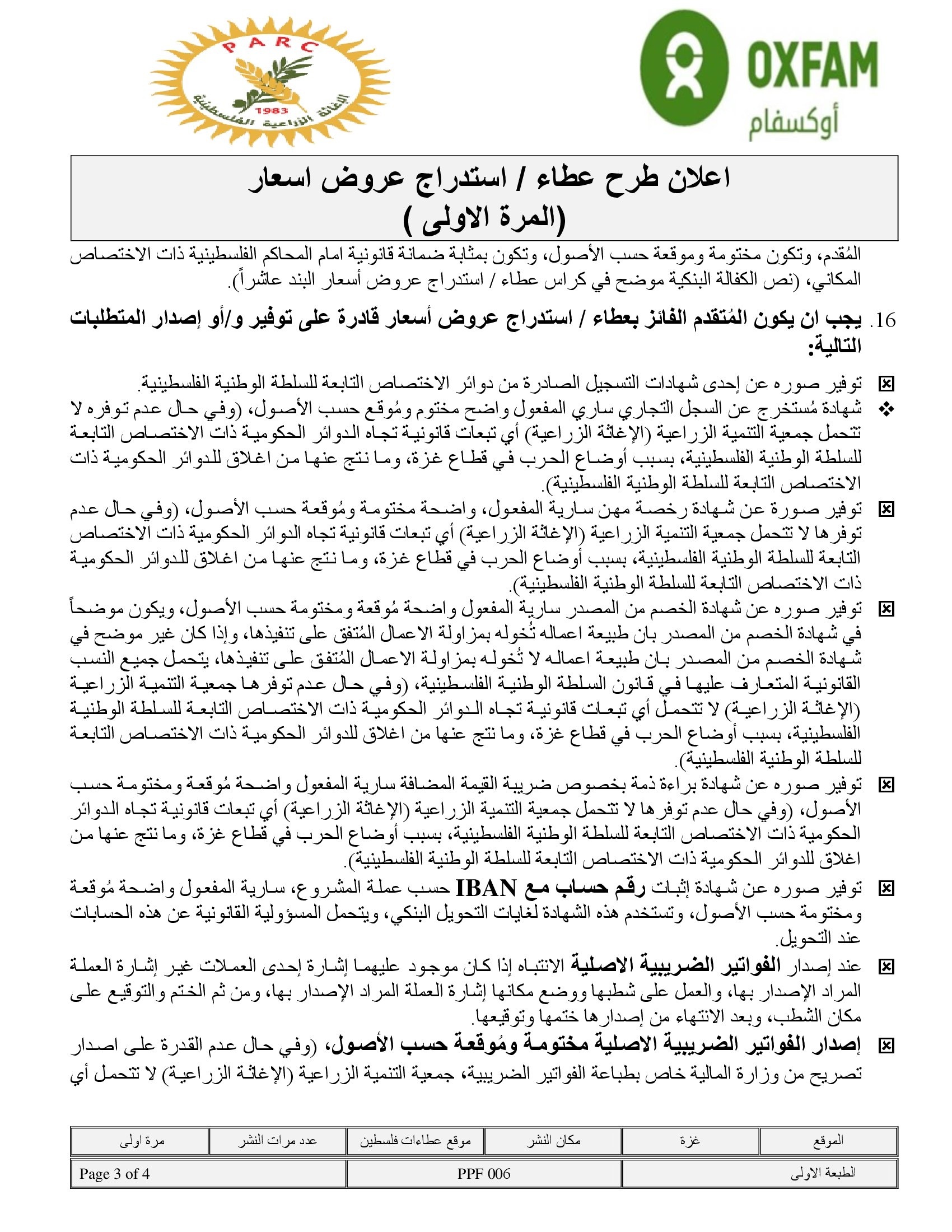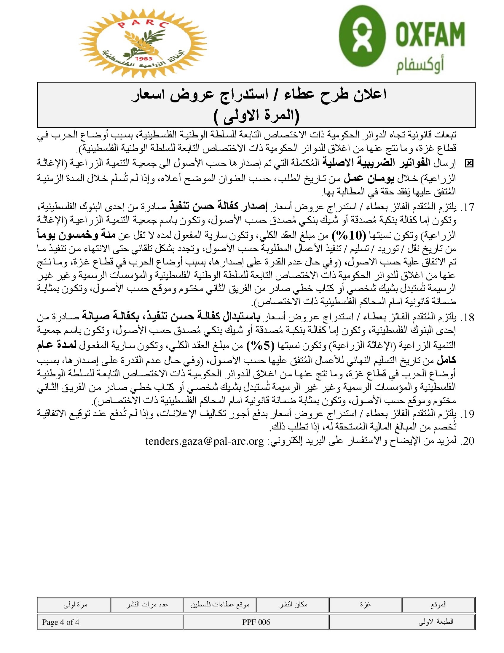 المؤسسة : جمعية التنمية الزراعية موقغ : الموقع الالكتروني بريد : info@pal-arc.org