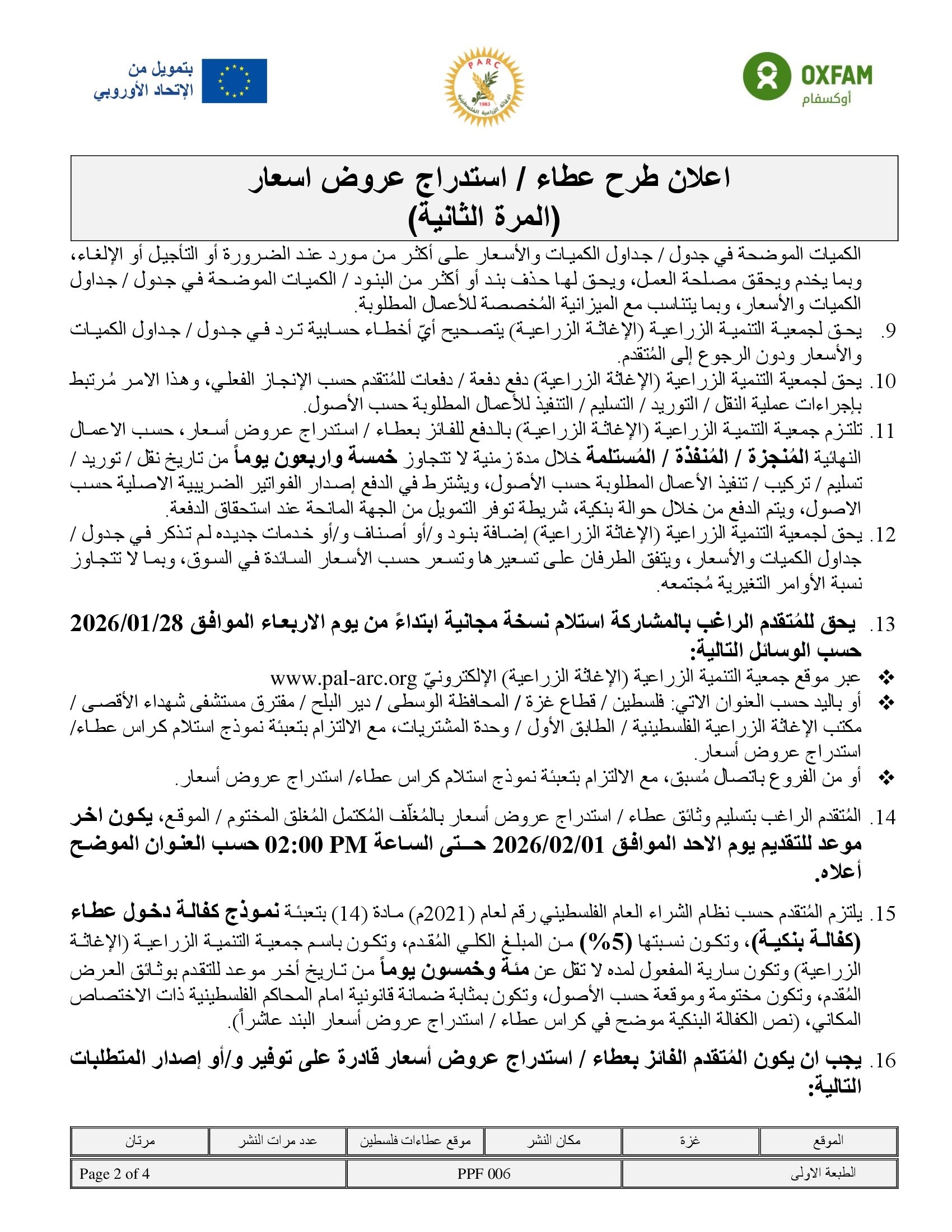 تاريخ النشر : 24/01/2026 تاريخ الانتهاء : 09/02/2026