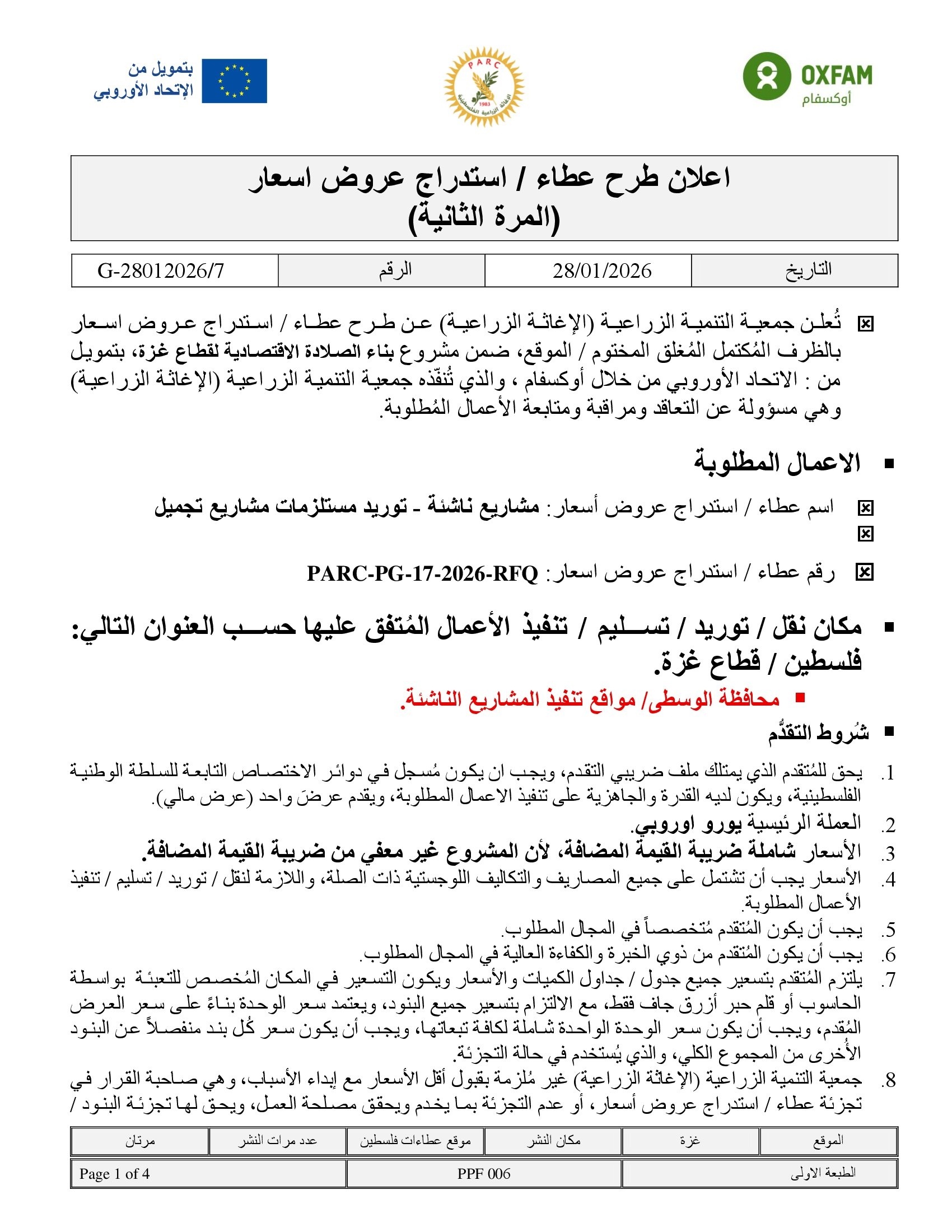 تاريخ النشر : 28/01/2026 تاريخ الانتهاء : 01/02/2026