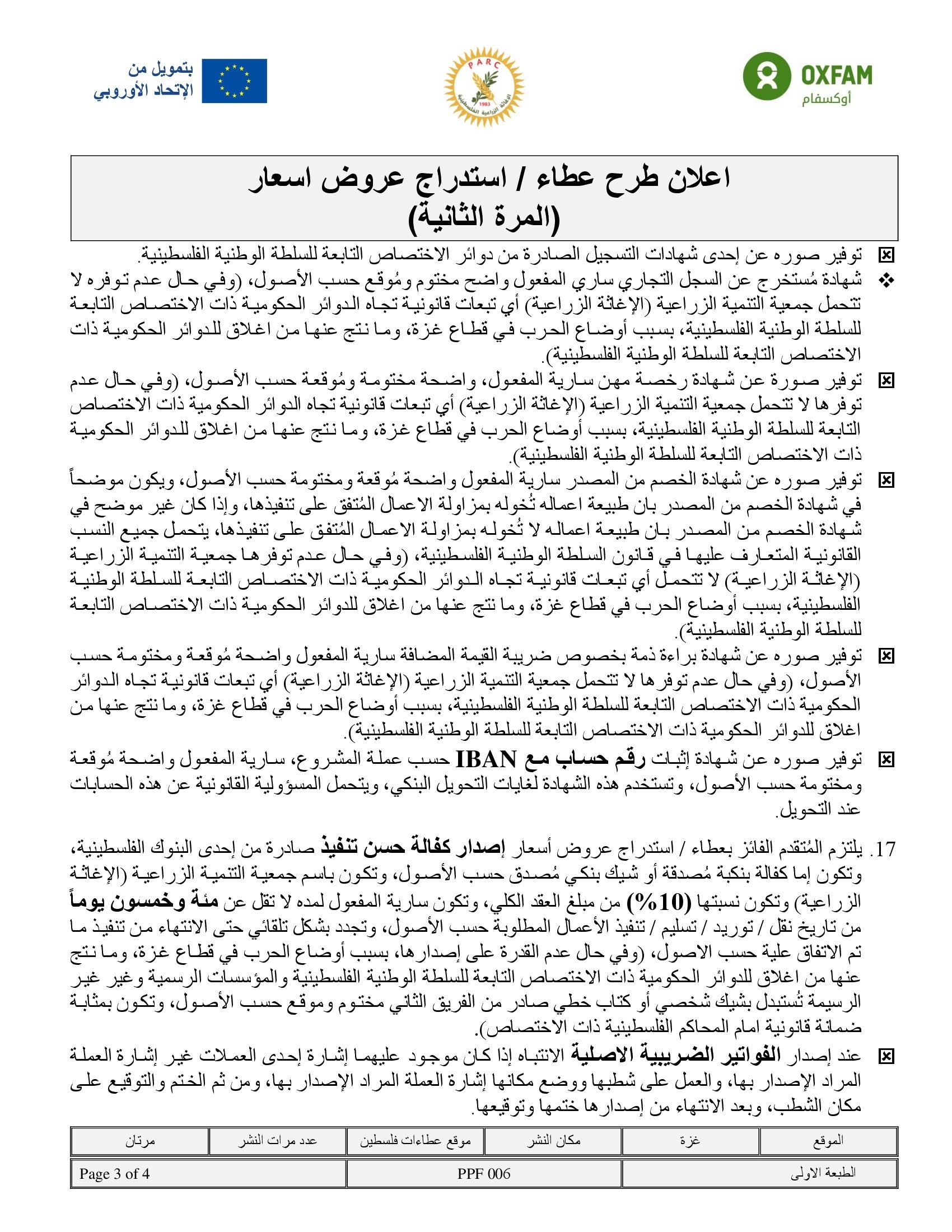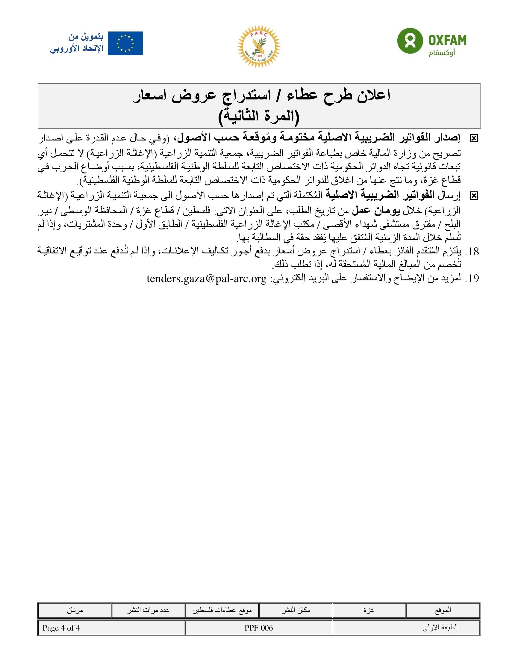 المؤسسة : جمعية التنمية الزراعية موقغ : الموقع الالكتروني بريد : info@pal-arc.org