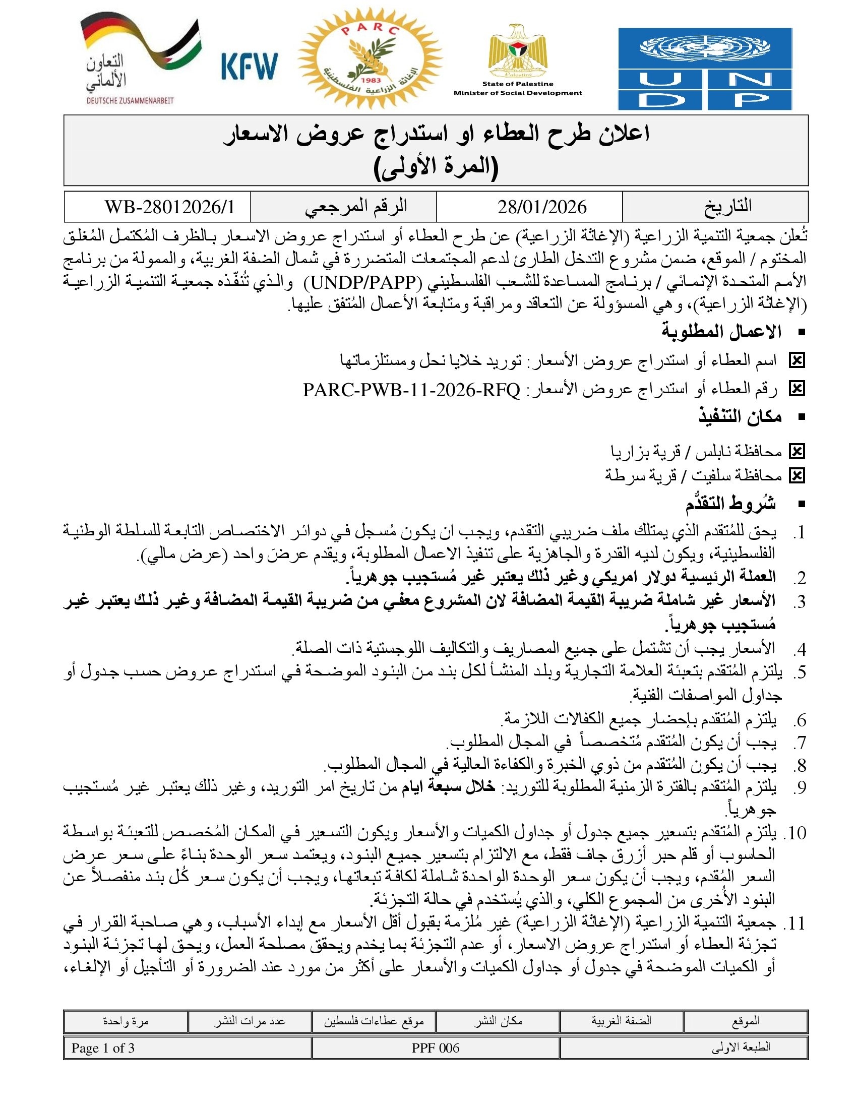 المؤسسة : جمعية التنمية الزراعية موقغ : الموقع الالكتروني بريد : info@pal-arc.org