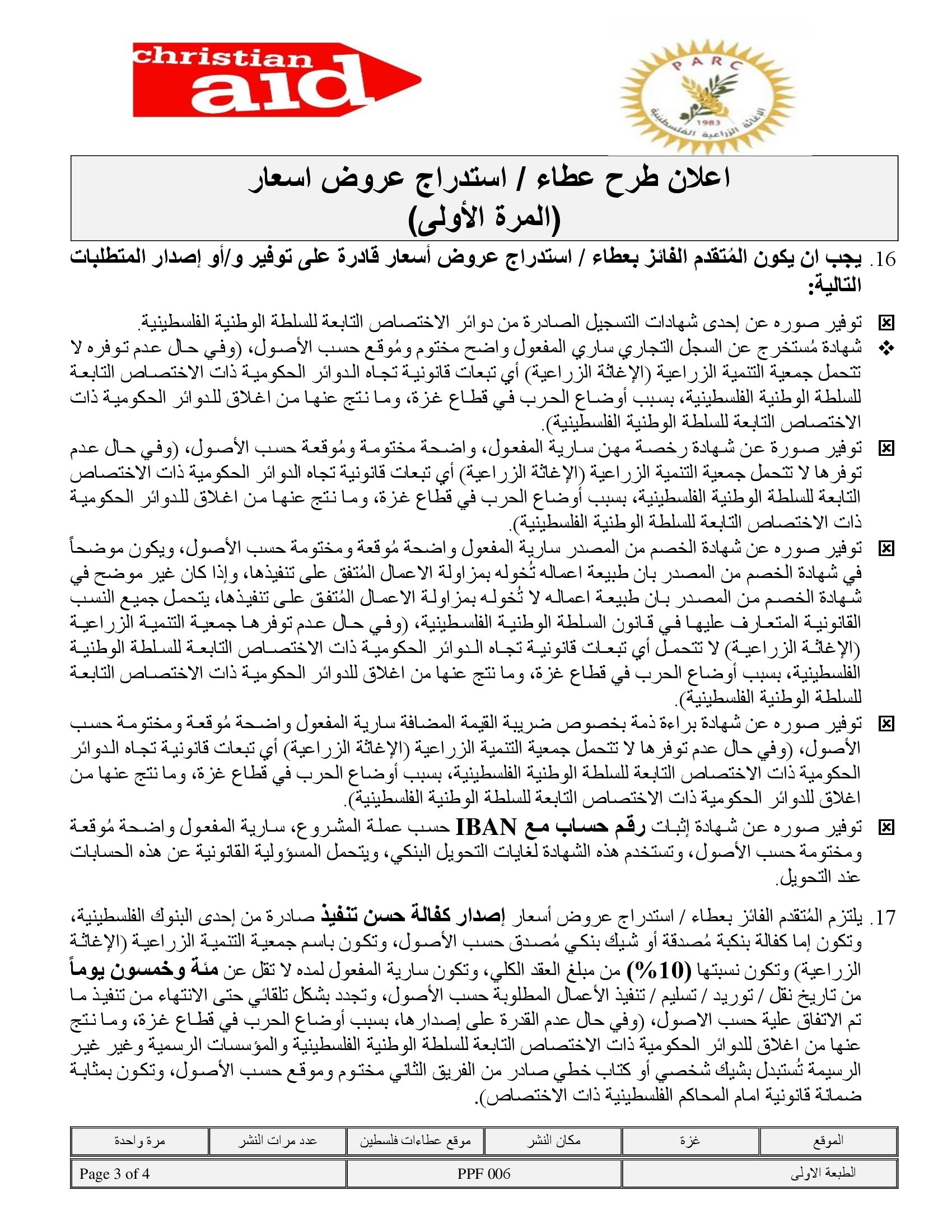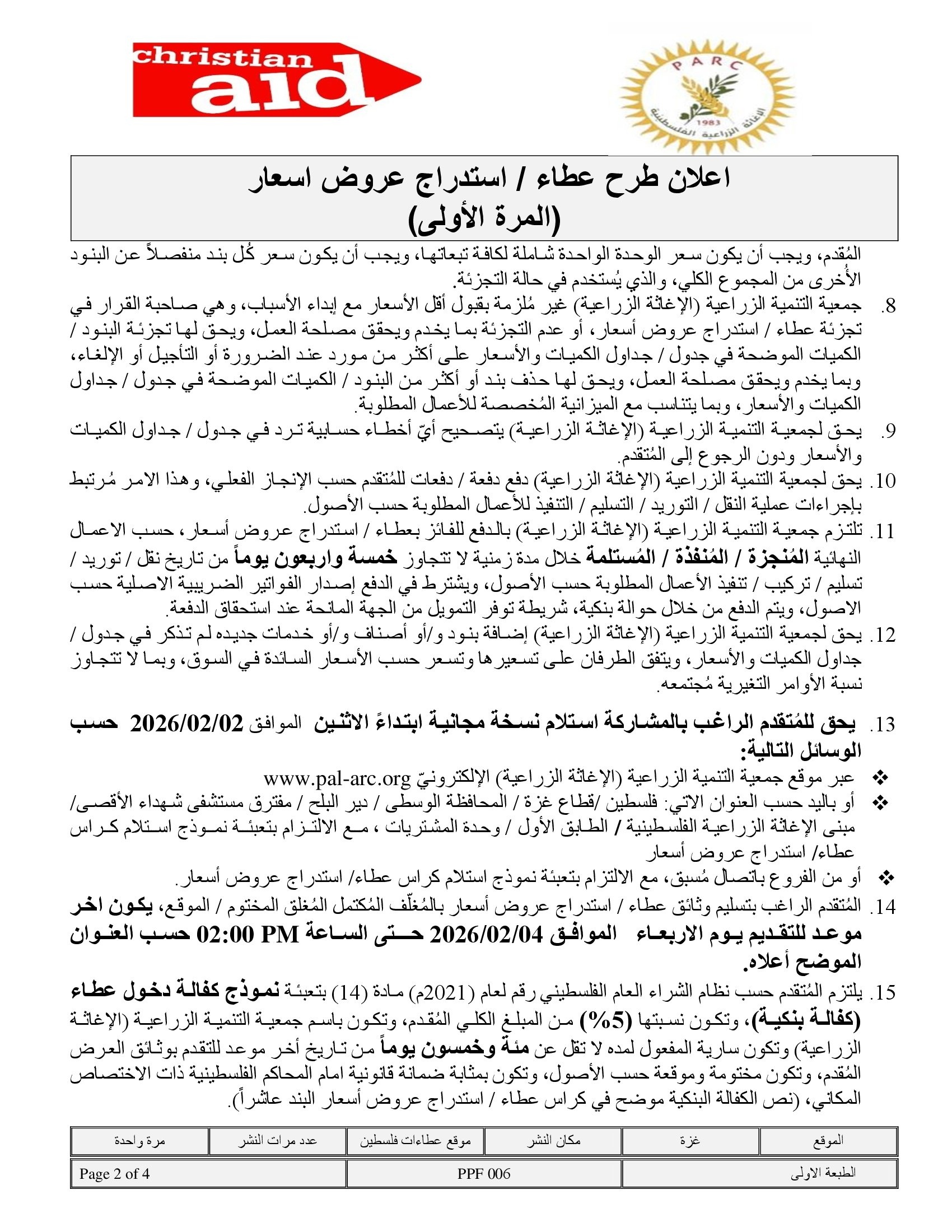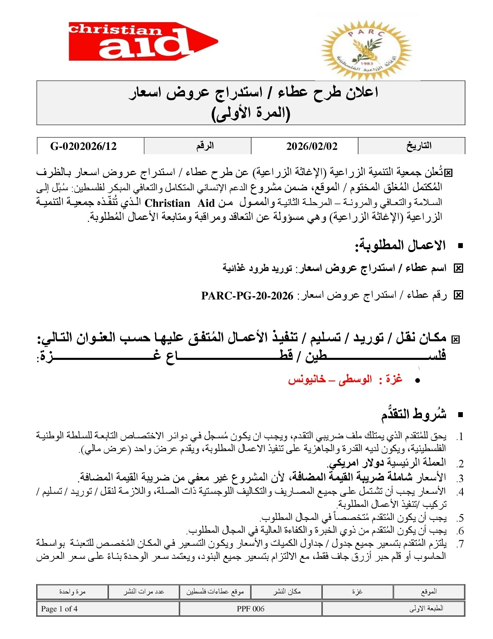المؤسسة : جمعية التنمية الزراعية موقغ : الموقع الالكتروني بريد : info@pal-arc.org
