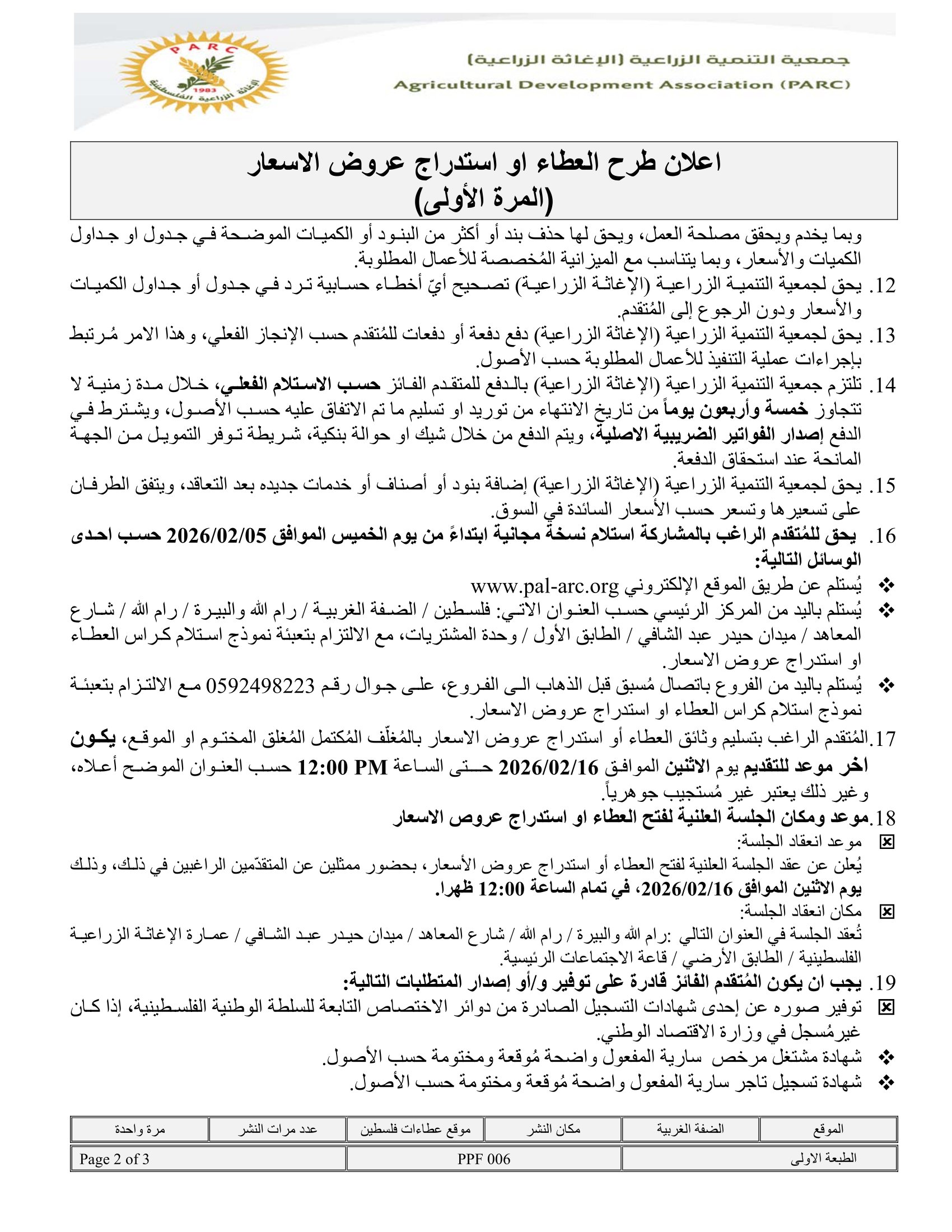 تاريخ النشر : 02/02/2026 تاريخ الانتهاء : 16/02/2026