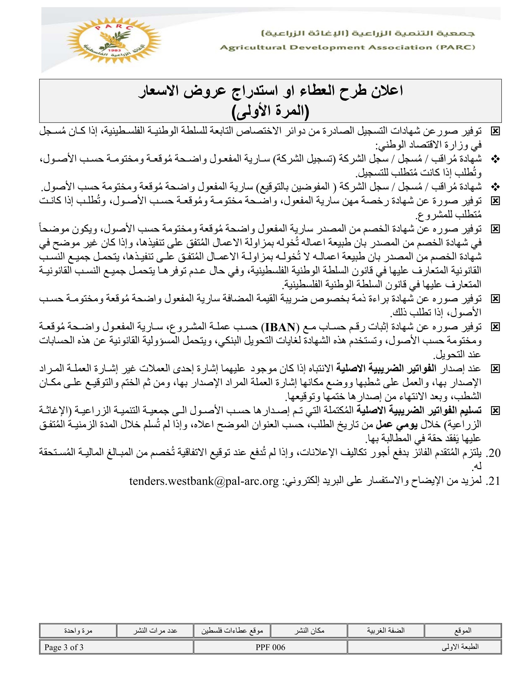 المؤسسة : جمعية التنمية الزراعية موقغ : الموقع الالكتروني بريد : info@pal-arc.org