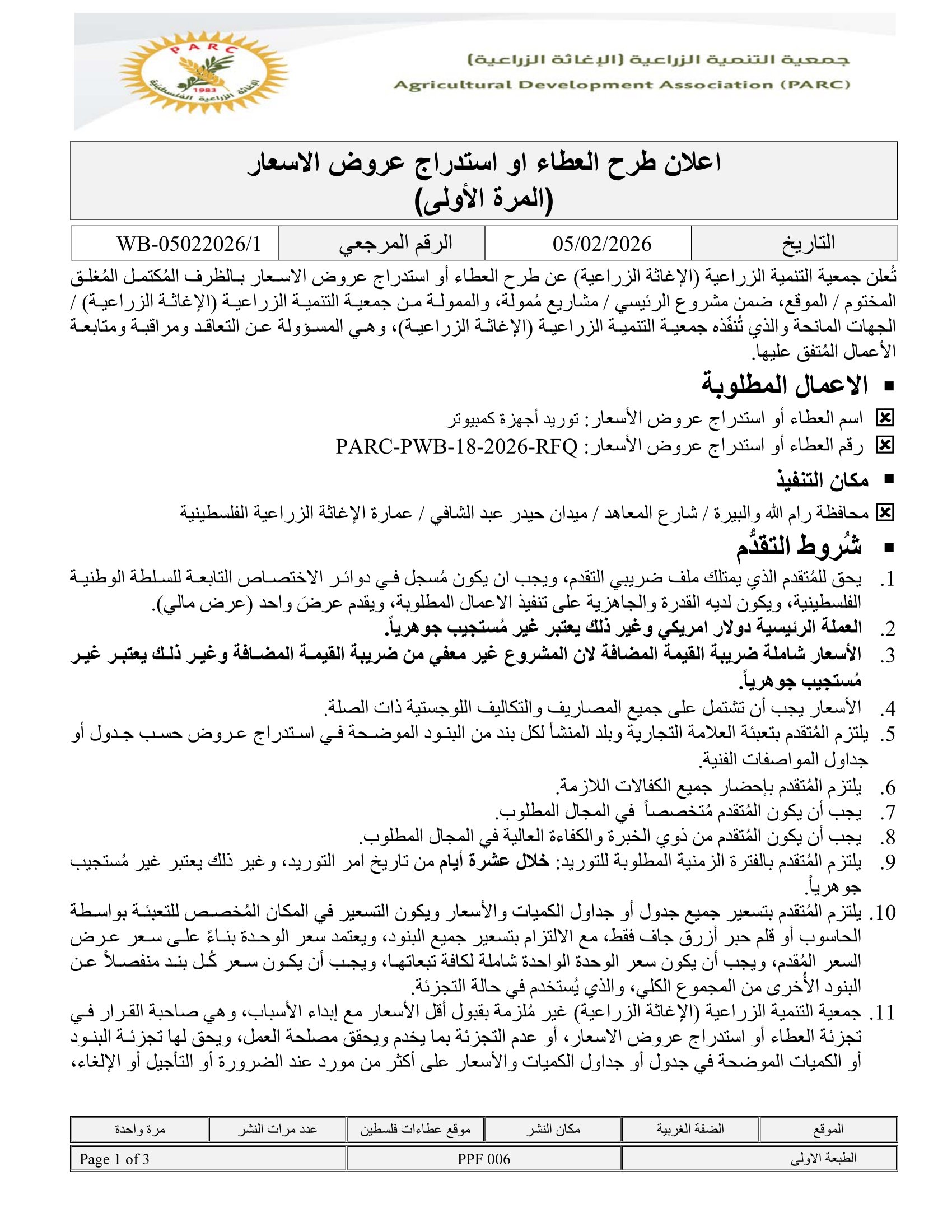 تاريخ النشر : 01/02/2026 تاريخ الانتهاء : 05/02/2026