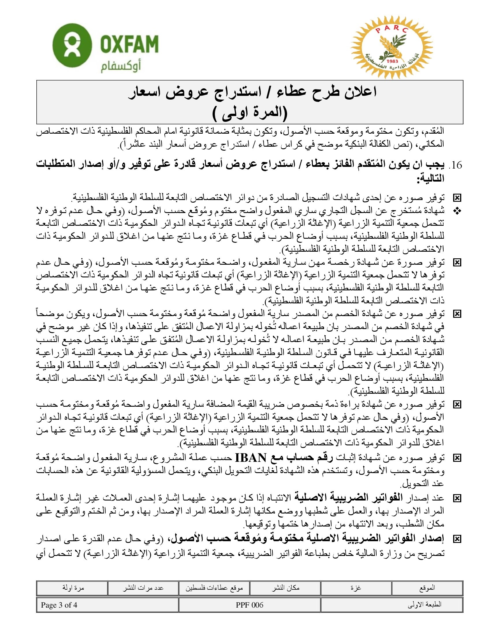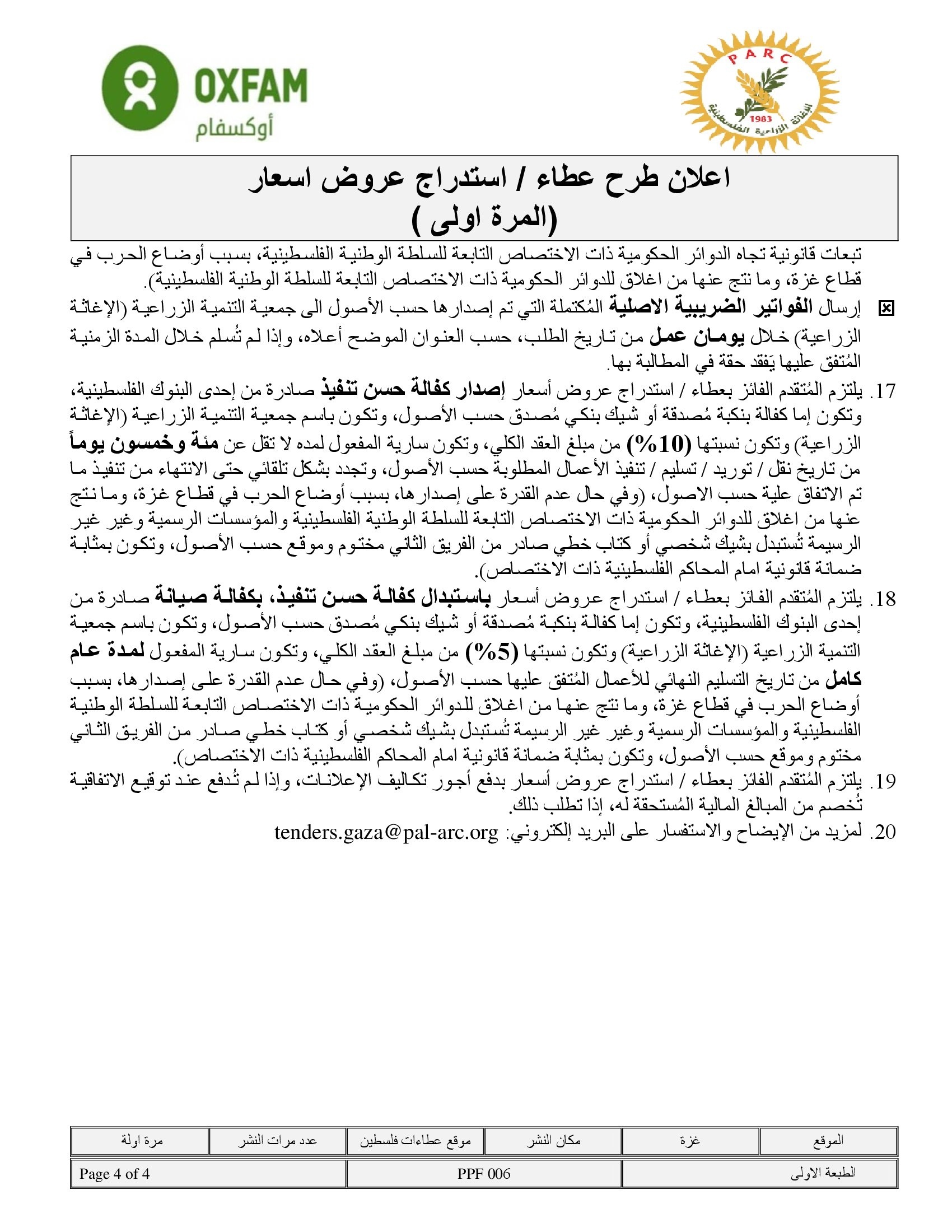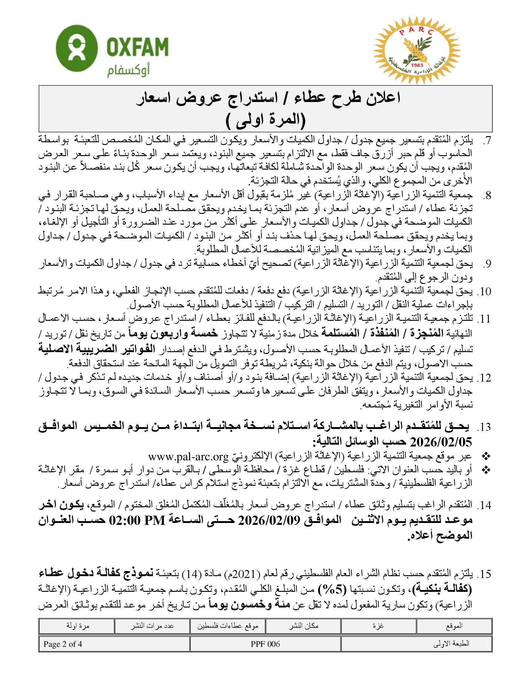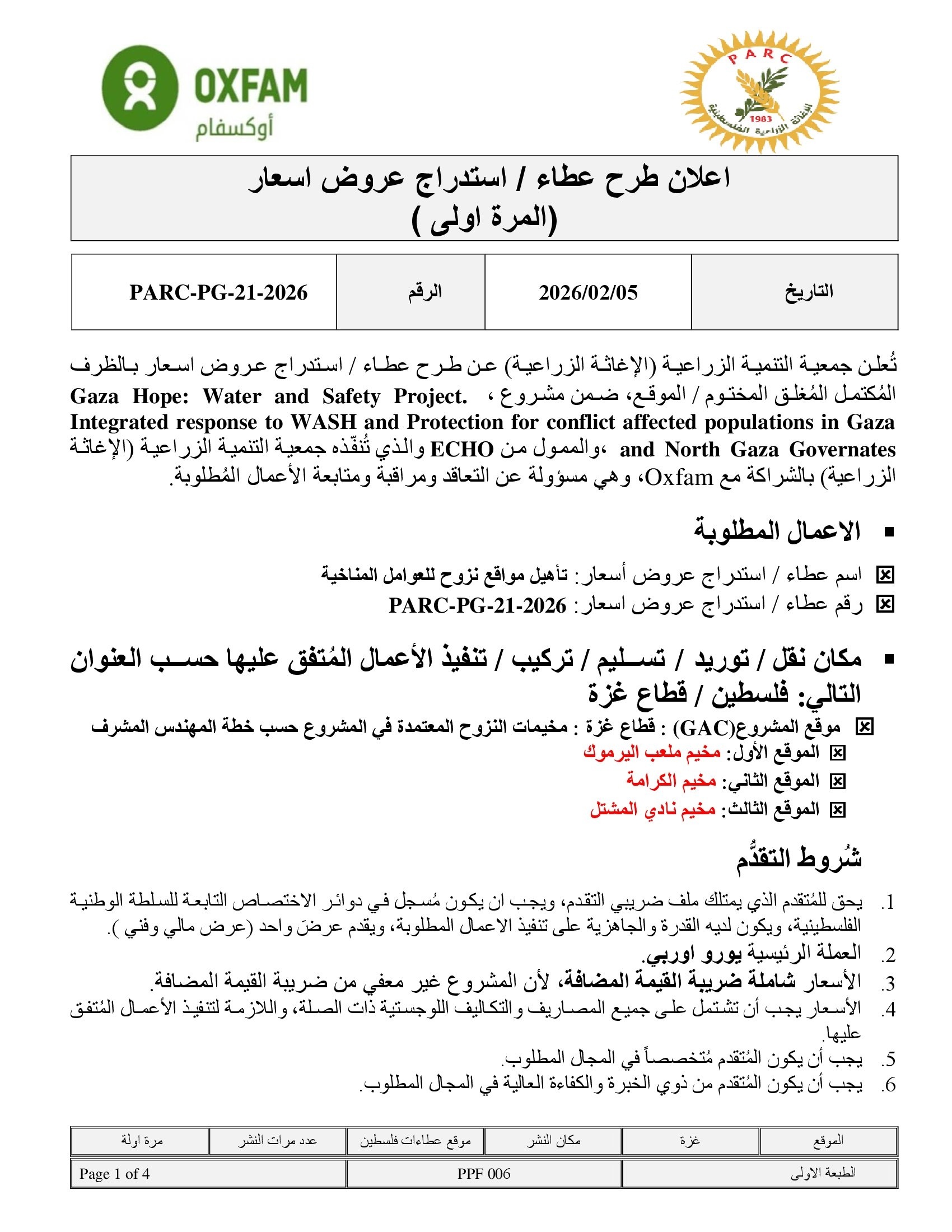 المؤسسة : جمعية التنمية الزراعية موقغ : الموقع الالكتروني بريد : info@pal-arc.org