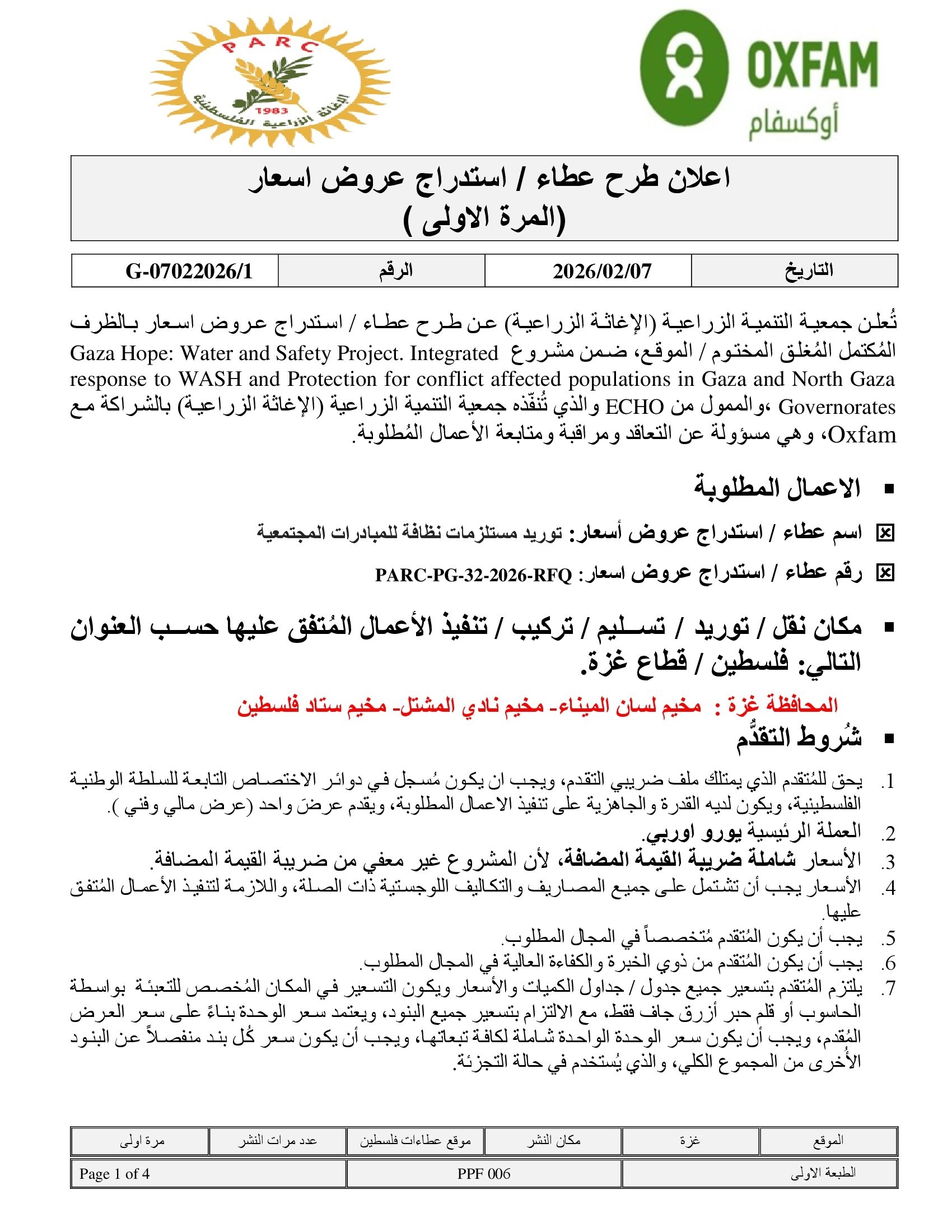 توريد وتركيب وتشغيل جهاز فلترة وتنقية مياه - جنين