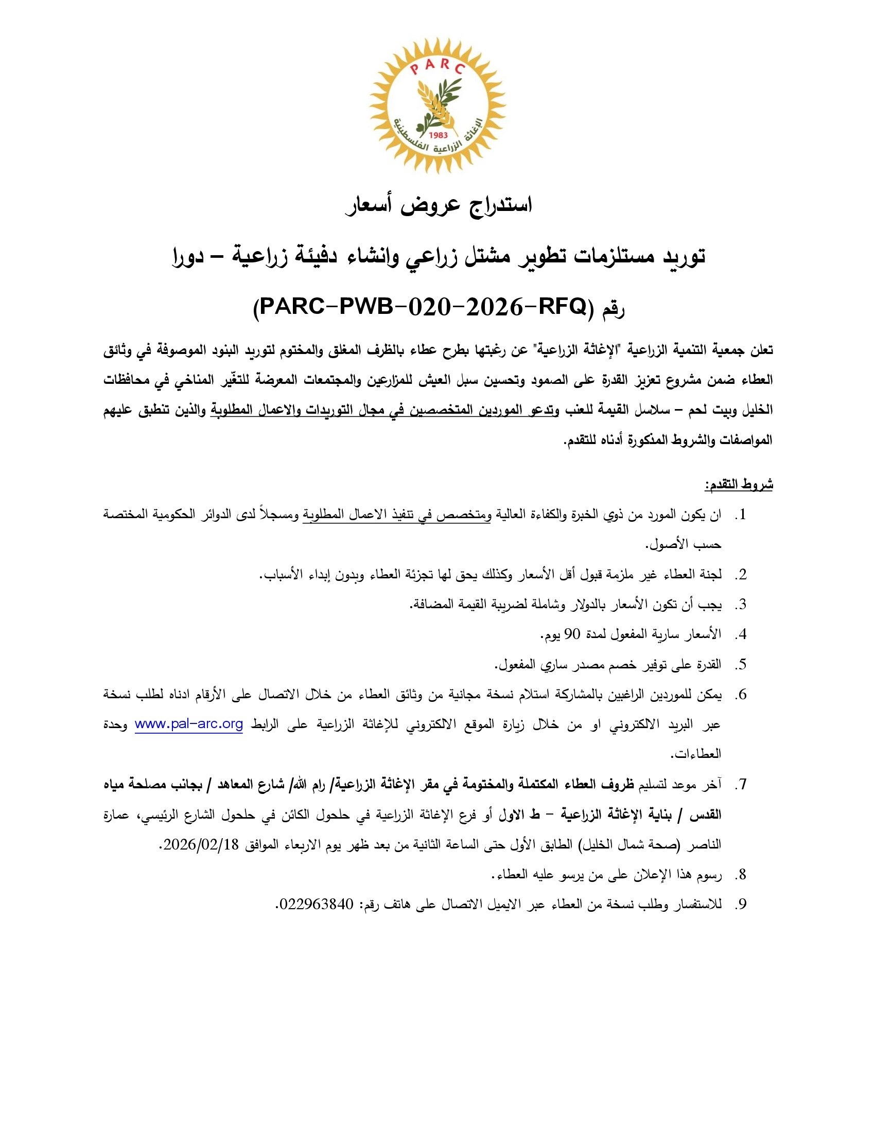 التصنيف : توريدات وخدمات زراعية وبيطرية
