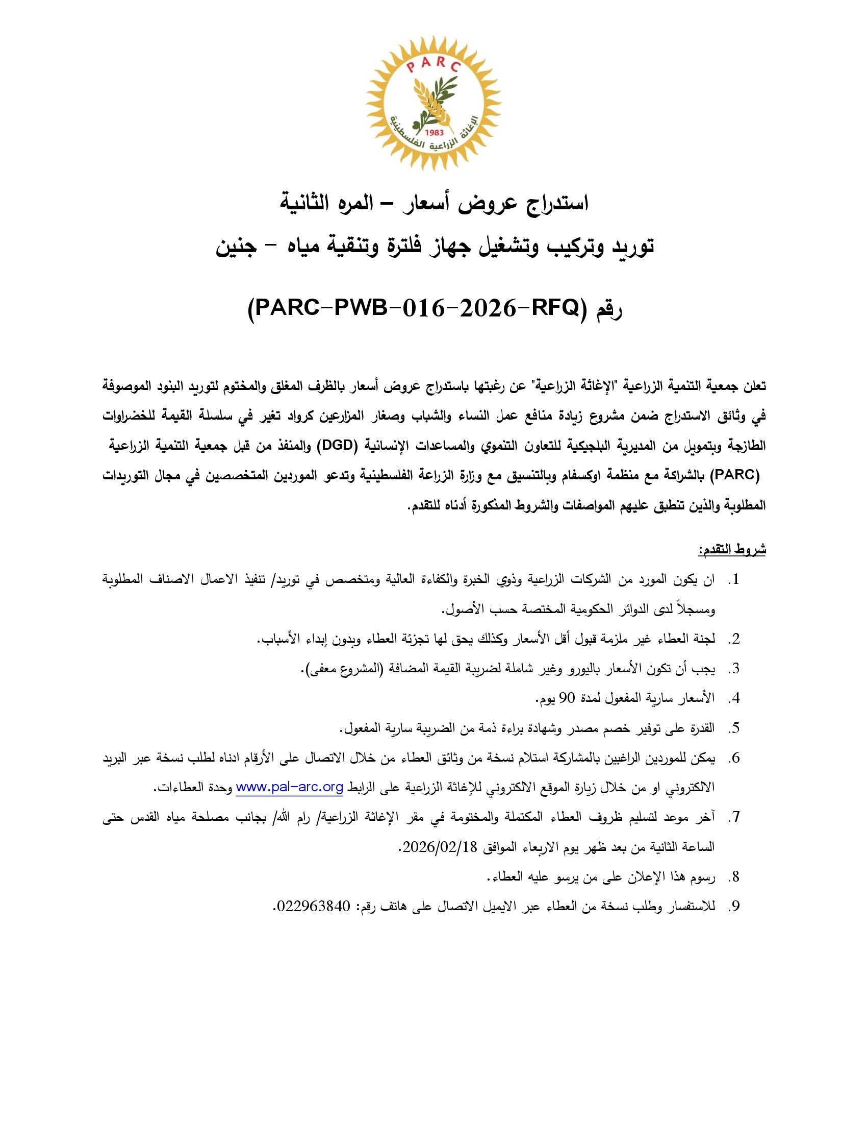 توريد وتركيب وتشغيل جهاز فلترة وتنقية مياه - جنين