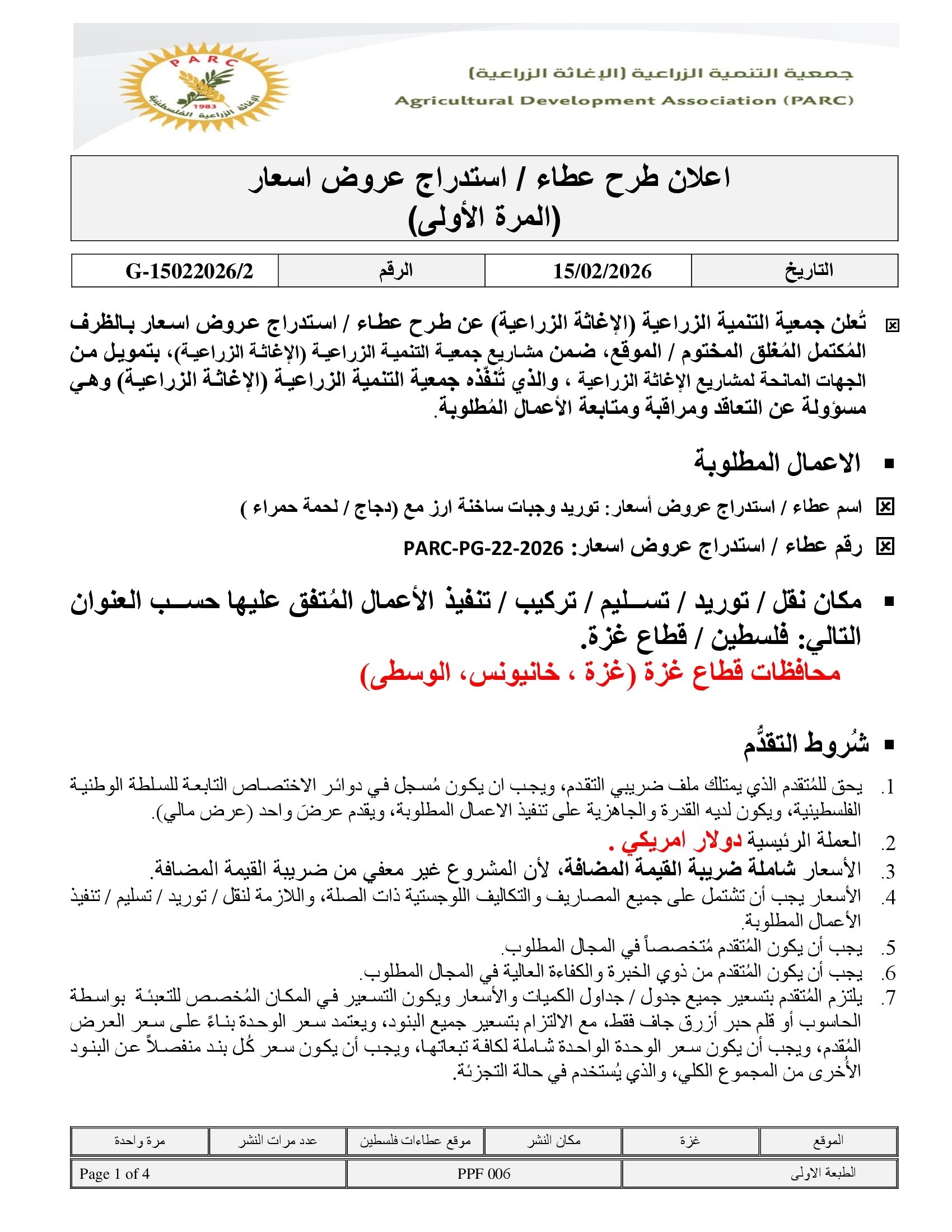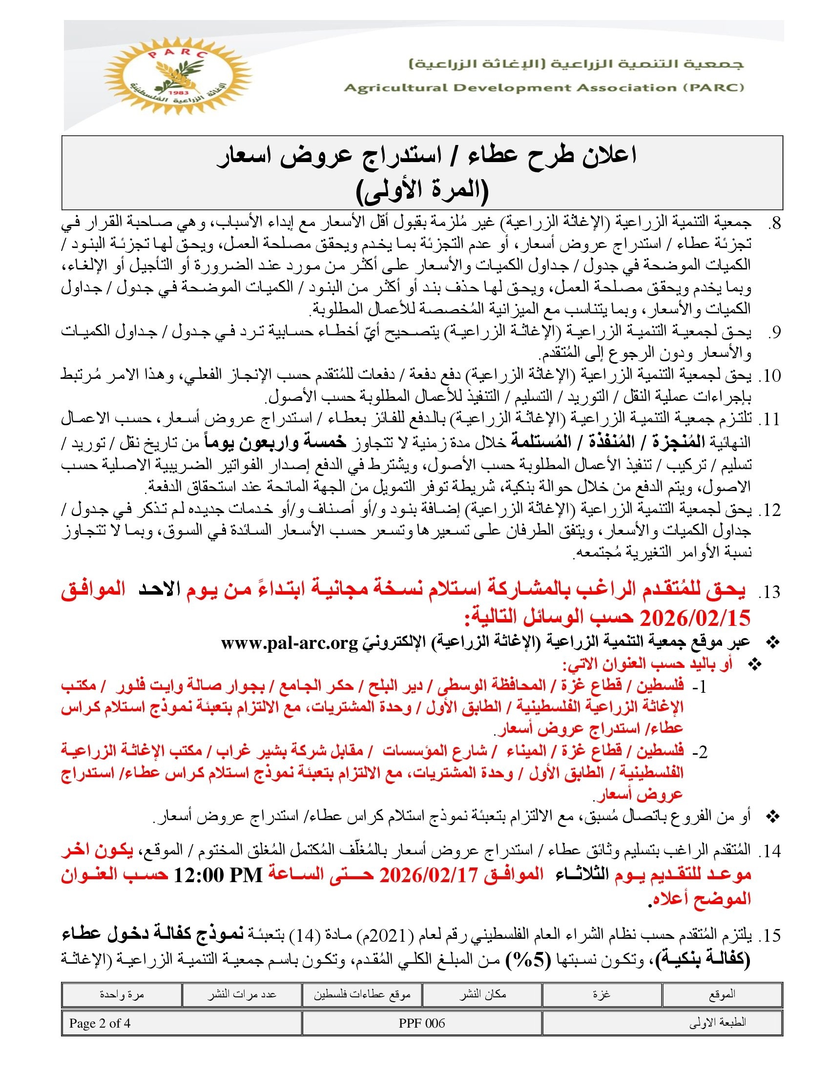 التصنيف : توريدات وخدمات زراعية وبيطرية
