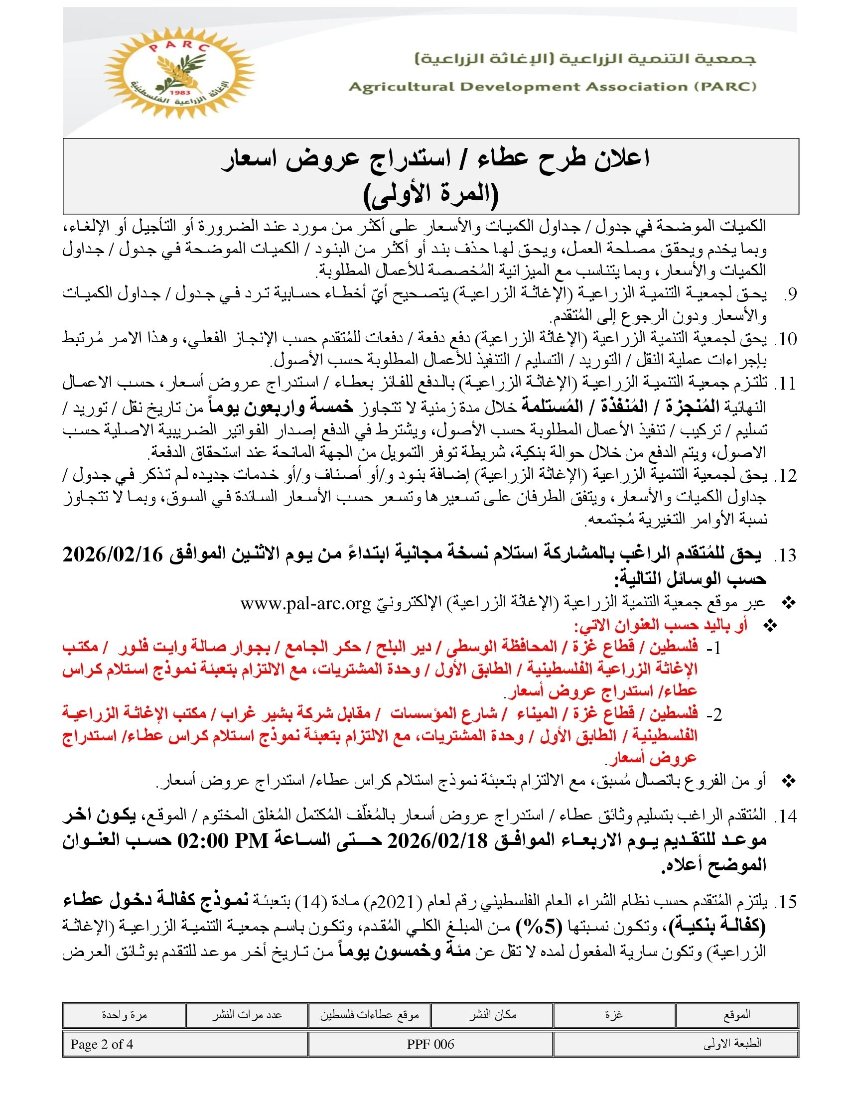 التصنيف : توريدات وخدمات زراعية وبيطرية