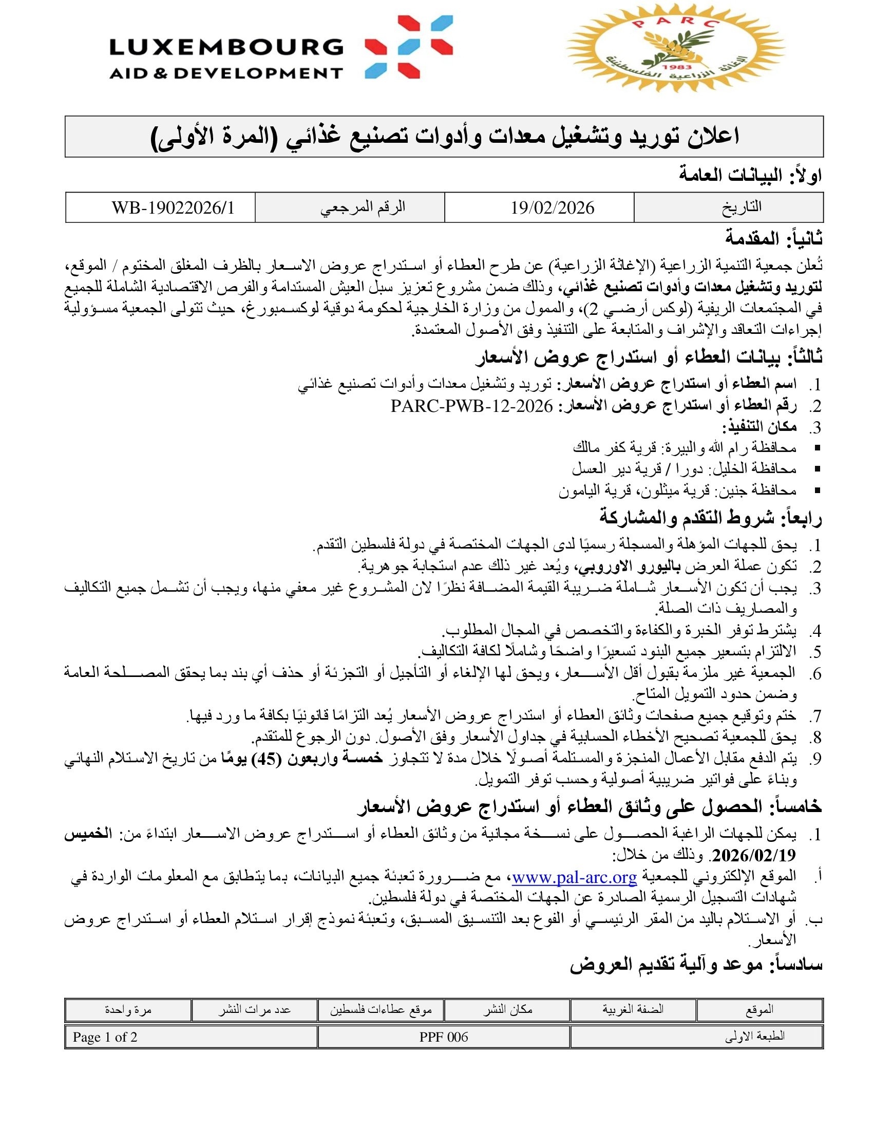 توريد وتشغيل معدات وأدوات تصنيع غذائي