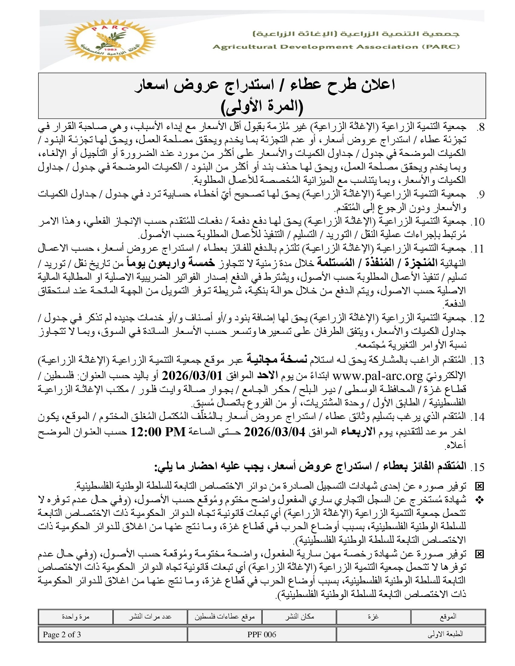 تفاصيل العطاء