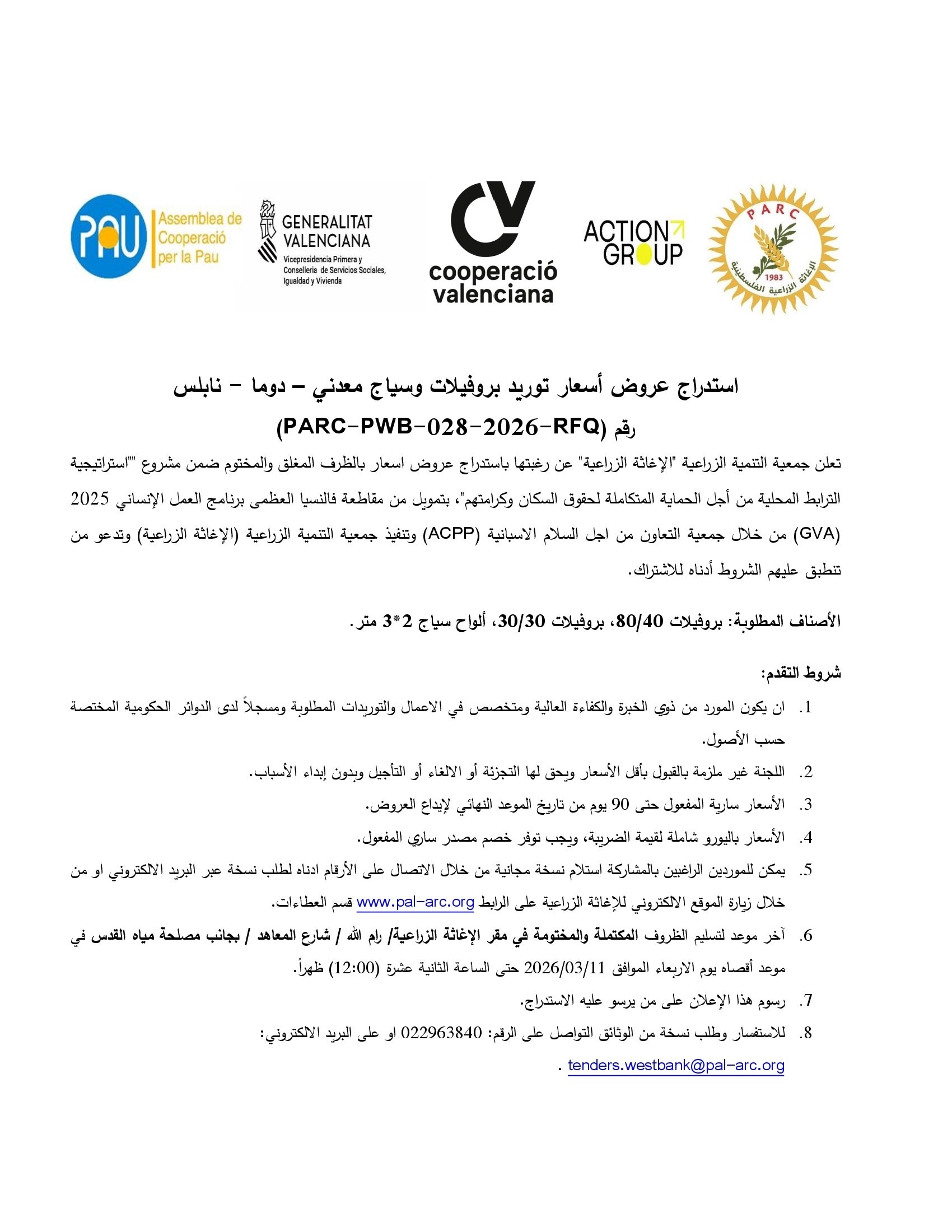 استدراج عروض أسعار توريد بروفيلات وسياج معدني – دوما - نابلس