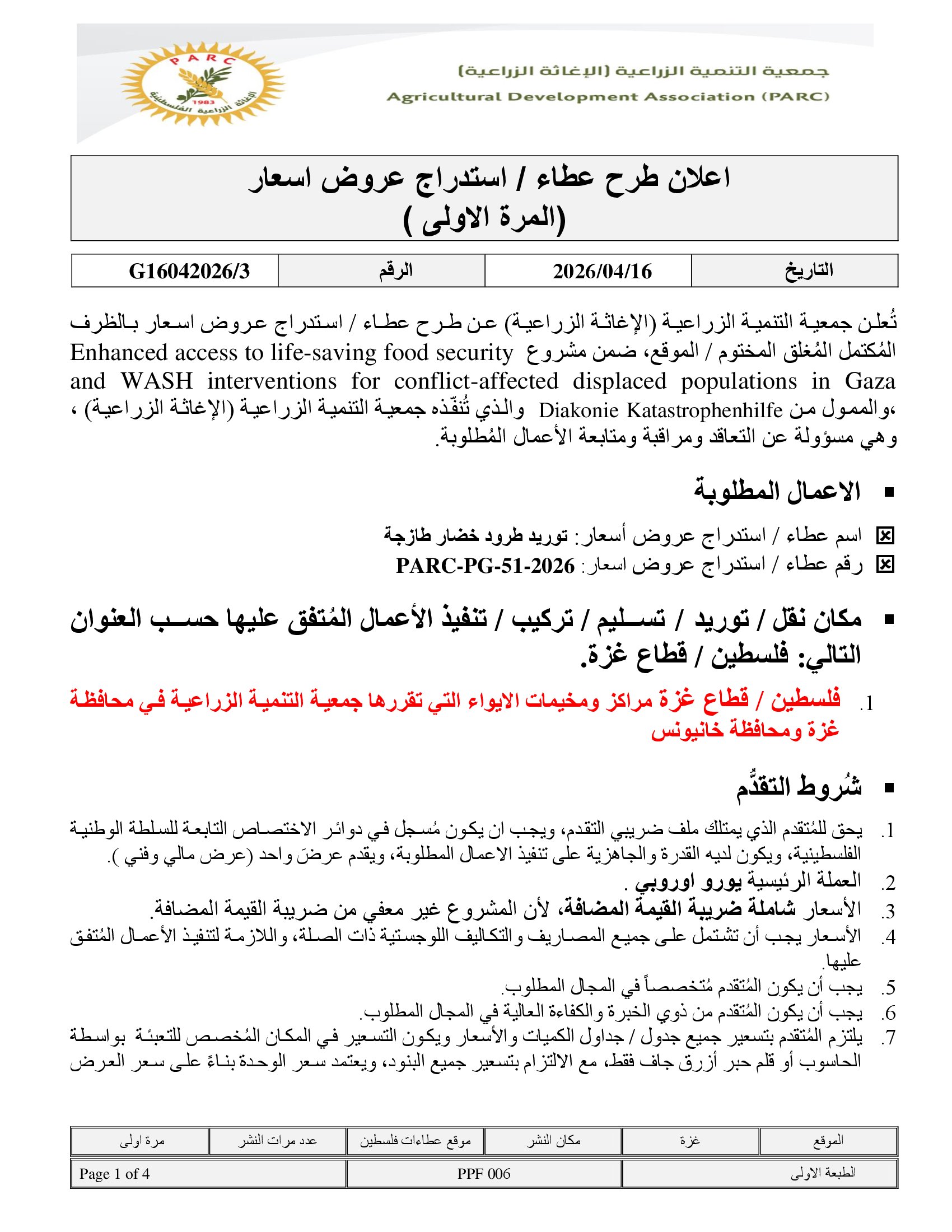 عطاءات غزة