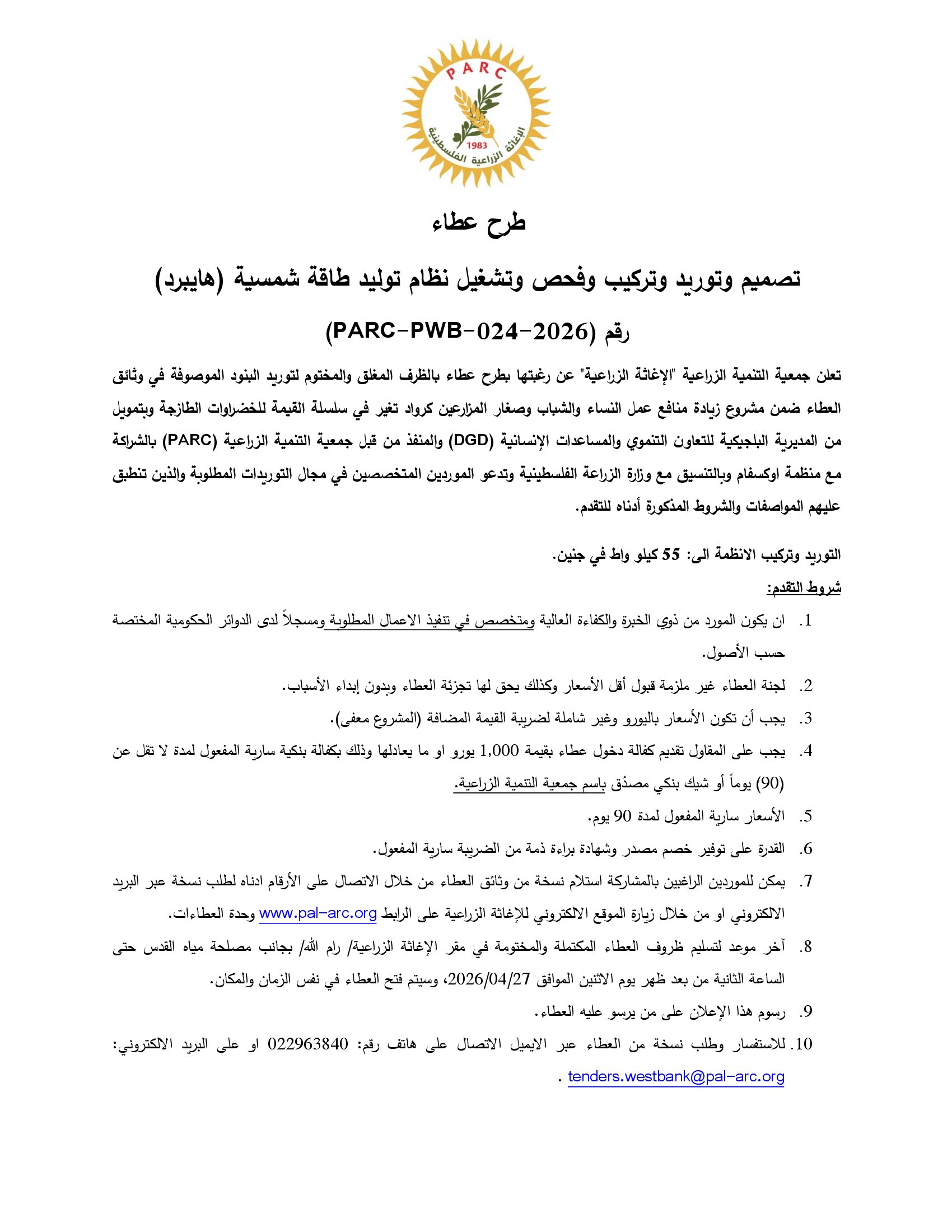 نصميم وتوريد وتركيب وفحص وتشغيل نظام توليد طاقة شمسية (هايبرد)