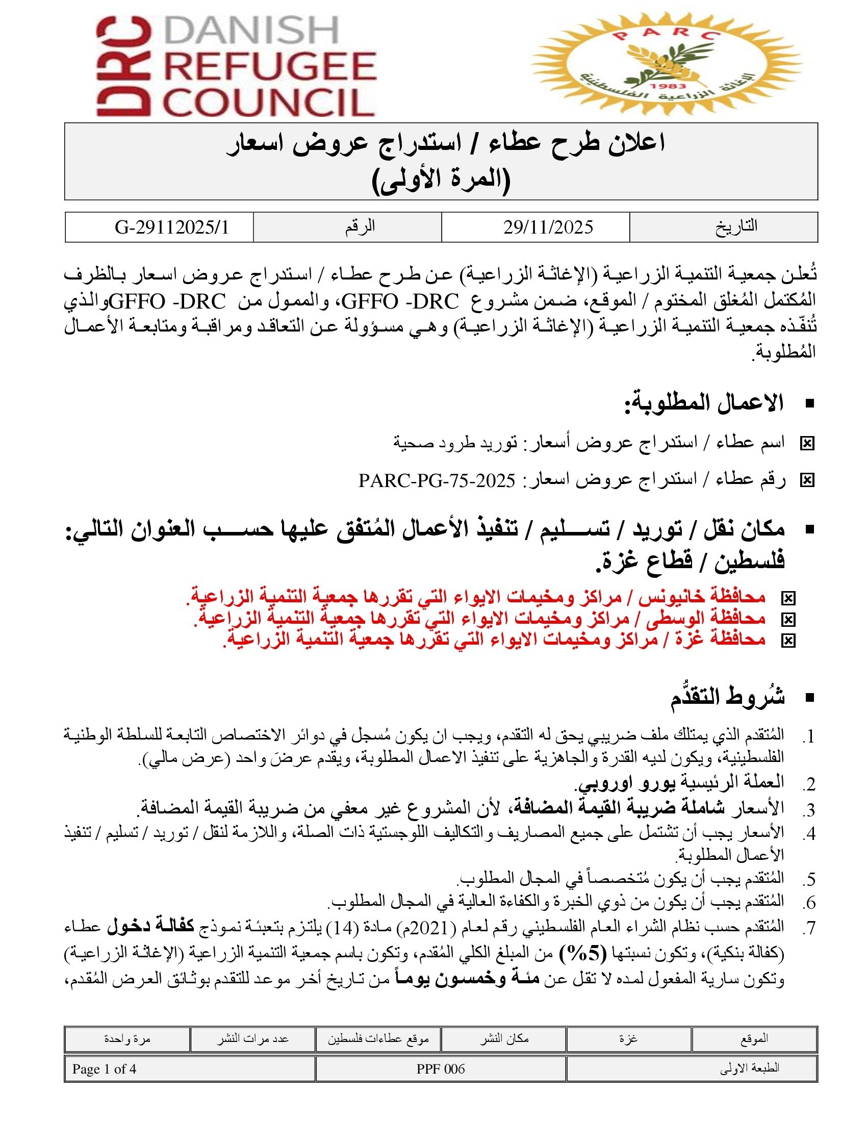 عطاءات غزة